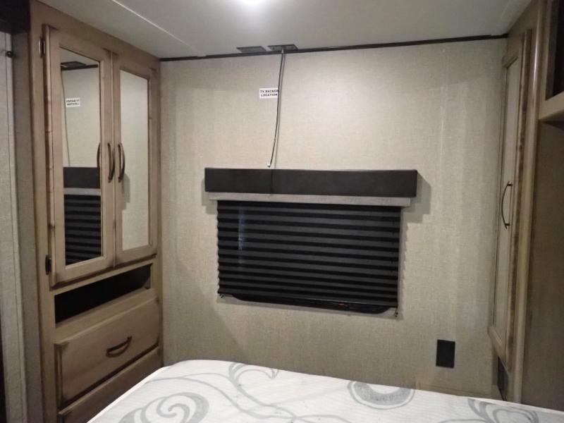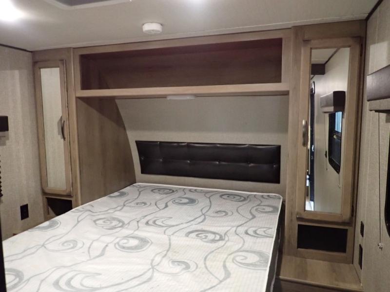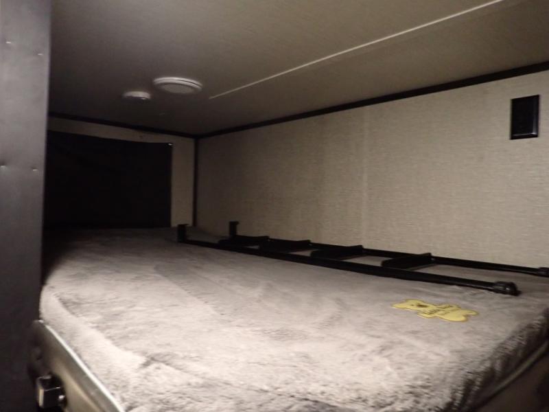 Looking for a set of bunk beds for the kids, and a private bedroom for yourselves? You can probably imagine all of the fun you will have with your family at state parks, national parks, and traveling to see family. From having your own bedding for everyone, plus the booth dinette that offers more than just a dining space, to having your own full bathroom and a pet drawer for your best friend, you will love everything about this trailer. Along the exterior you will find a pull-out drawer, and pass-through storage with 43 cu. ft. to load your larger outdoor camping items and such. This is the one!