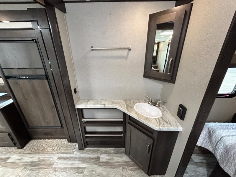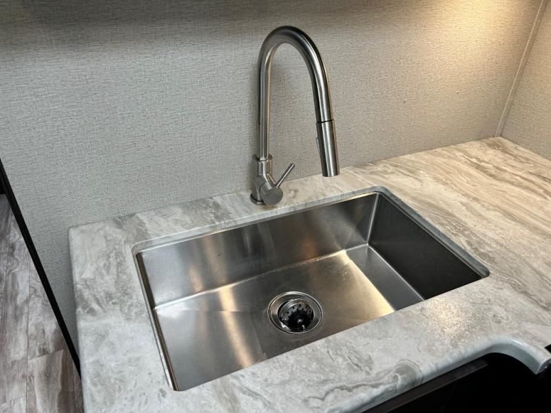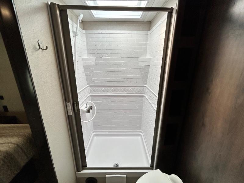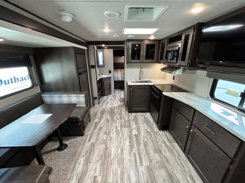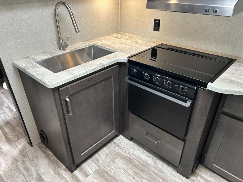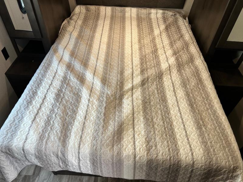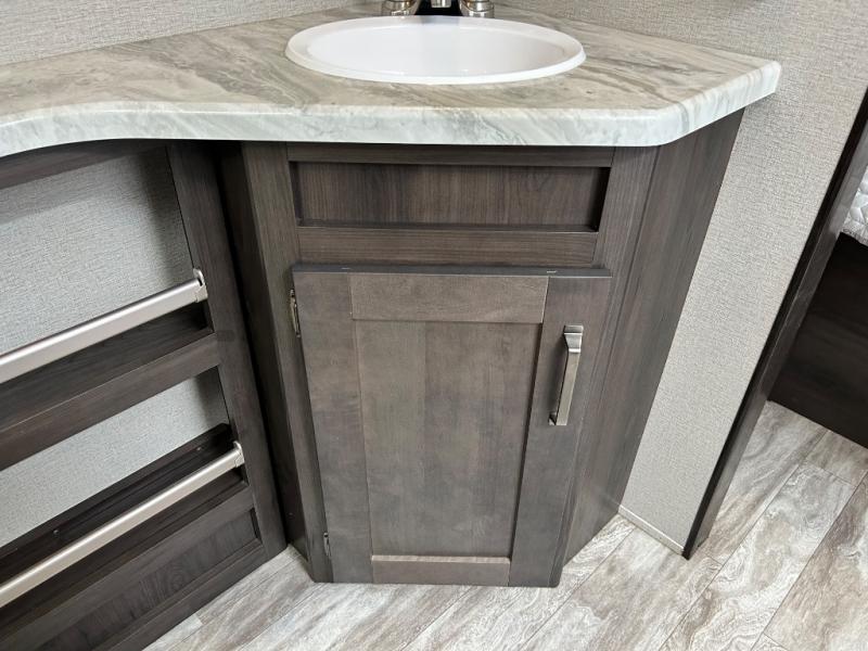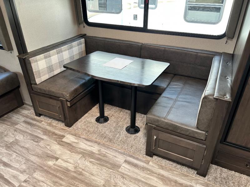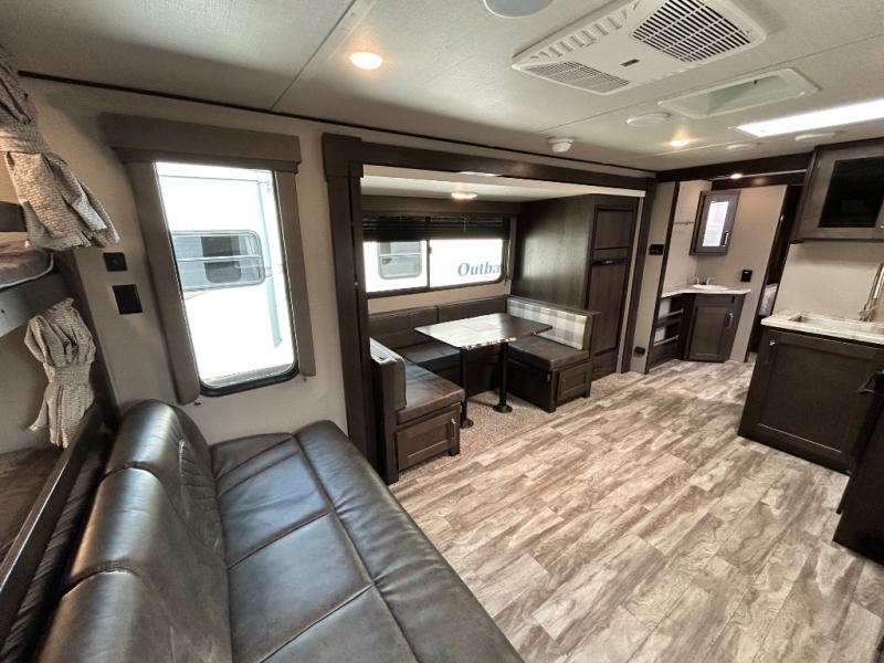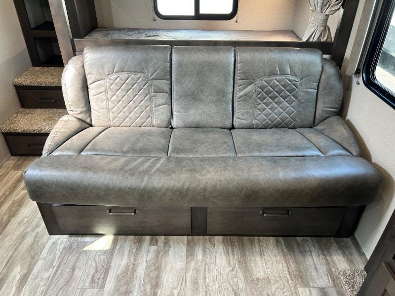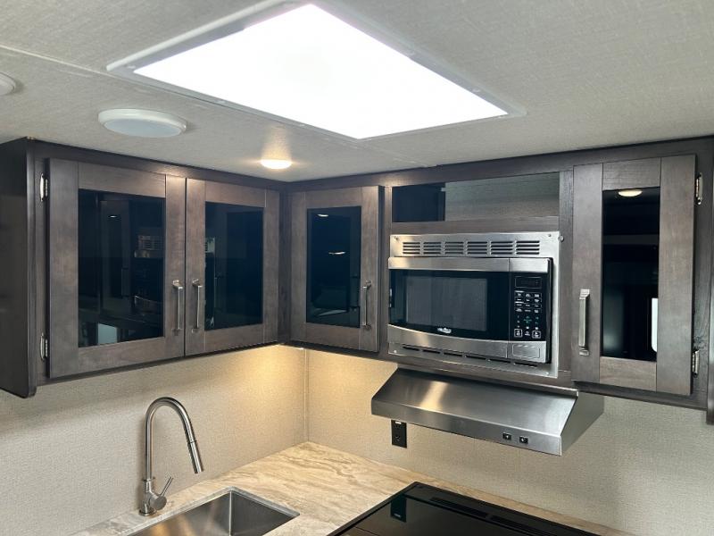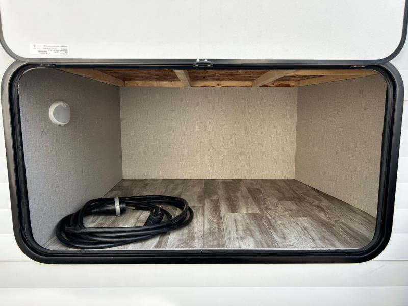 Your family will love the space and the amenities while camping at all of your favorite places in this new Transcend Xplor travel trailer. There is plenty of sleeping space with double-size bunks in back and a queen-size bed in the front private bedroom. You can also use the jackknife sofa and U-shaped dinette for added sleeping for more overnight guests. Two entry doors in this unit make loading and unloading simple, plus the second entry door into the front master bedroom is great for slipping out for a morning walk or coffee under the 16' power awning without disturbing the kids while they are asleep in the bunk space in back.