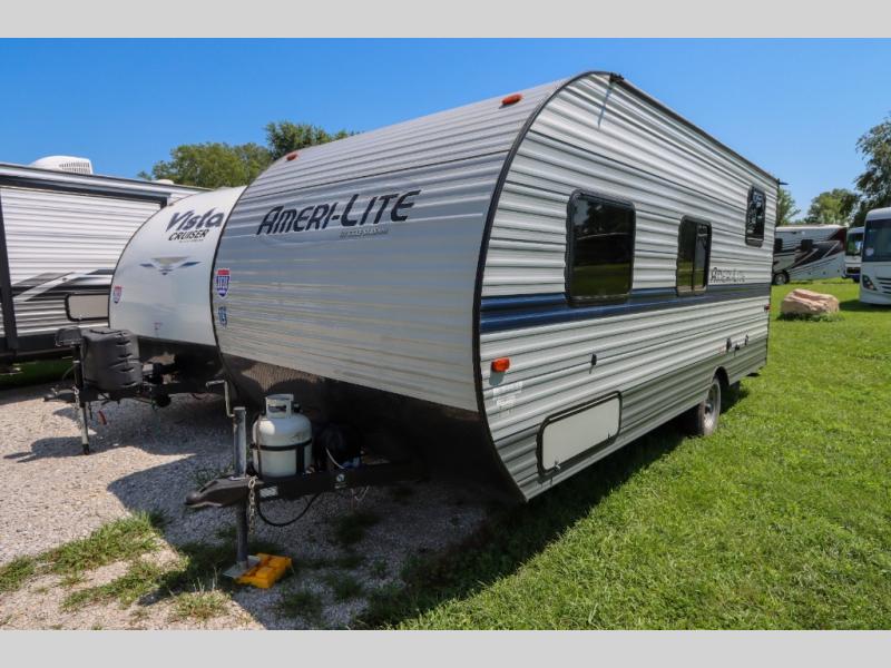 If you're looking for an affordable, lightweight travel trailer, you've found it in the Ameri-Lite Super Lite by Gulf Stream. These models may be lighter in weight, but they don't skim out on comfortable features. Each unit includes high-performance vinyl flooring throughout, a white kitchen sink, craft-made cabinetry with designer pulls, plus fabric-wrapped box valances to make you feel right at home. The 16,000 BTU furnace and 13,500 BTU A/C will keep you comfortable in any season, and each model includes multiple USB ports for your tablet and phone, and a 6' 8" ceiling height for added space. You can't go wrong with an Ameri-Lite Super Lite travel trailer. Choose your favorite floorplan today!