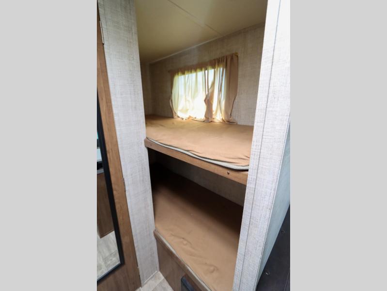 When you own this Ameri-Lite Super Lite travel trailer, you own a trailer that gives you ample storage space at an affordable price. With its compact design, this trailer is easy to tow yet full of living space. The bunk beds, the booth dinette, and the queen-sized bed allow this unit to sleep five adults comfortably while still leaving room for things like the private bathroom. The two burner cooktop and microwave oven allow you to prepare meals each day, and the power awning gives you the ability to enjoy the great outdoors without experiencing the sun's harmful rays.