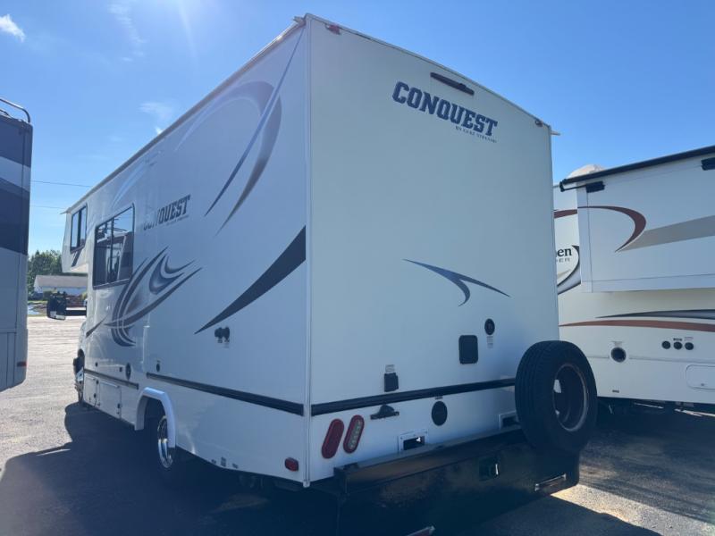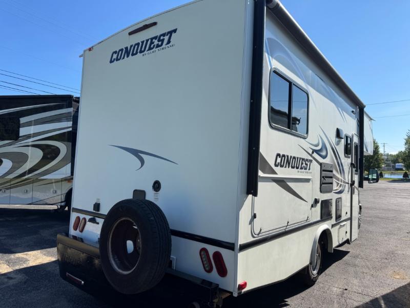 Look no further than the Gulf Stream Conquest Class C gas motorhome to safely travel the countryside! Beginning with the "Cradle of Strength" construction, the fuel-efficient Ford E350 or E450 chassis, and the welded aluminum perimeter frame, you will find that the Conquest is the perfect foundation to all of your travels. The Conquest Luxury package that comes standard on each model provides a 4.0 kW Onan generator to keep everything running, stainless steel appliances for a stylish look, and upgraded exterior graphics to catch your neighbor's attention. It's time to choose the floorplan that works best for your family's traveling lifestyle!