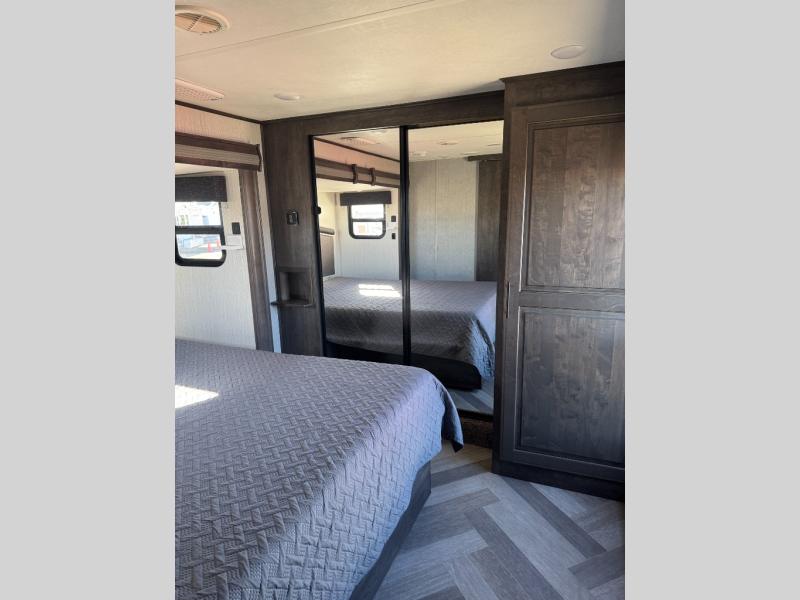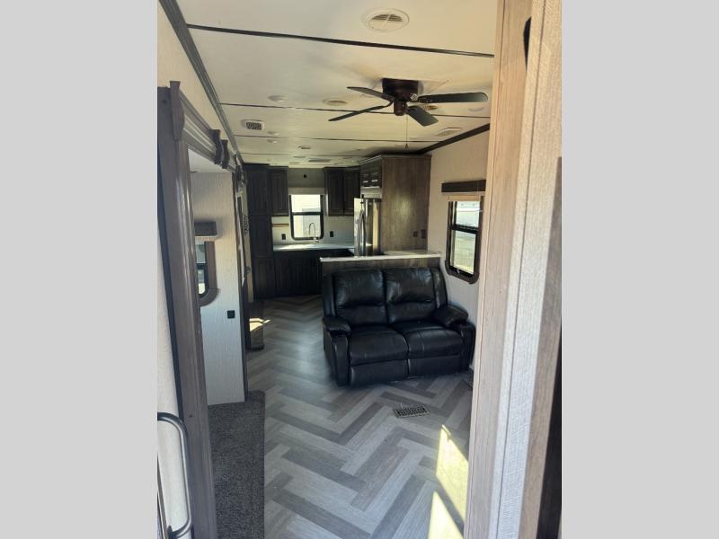 There's no place like home, and with this Big Country fifth wheel, that's exactly where you'll always be! From the private master bedroom with a king-size bed and walk-in closet, to the fully functional rear kitchen with a free-standing table and chairs, this model will give you everything you need, and then some. The dual-sink vanity in the full bathroom will come in handy each morning as you get ready for the day, and after you've spent an exhausting day outdoors, you will look forward to returning home to the theater seating and relaxing for the night.