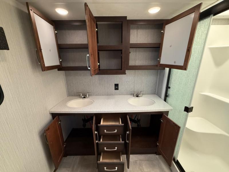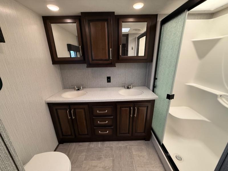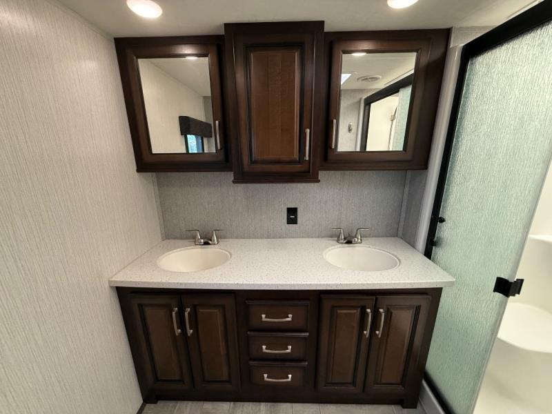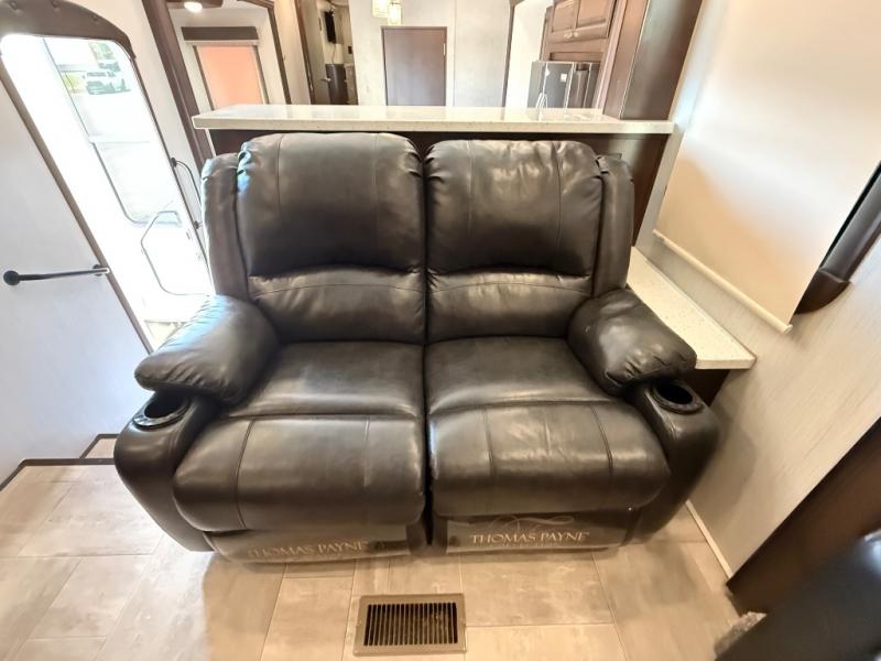 You're sure to love camping in this high-end Heartland Big Country 3902 FL fifth wheel! It features a bath and a half with the full rear bathroom featuring a dual-sink vanity. You will find that meal prepping is a breeze with the kitchen island because it offers extra counter space and storage space below. You can enjoy time spent together with the whole family on those rainy days by relaxing on either one of the sofas or theater seats in the front living area. And what better way to escape the sun while still being outside than to sit underneath one of the two awnings?