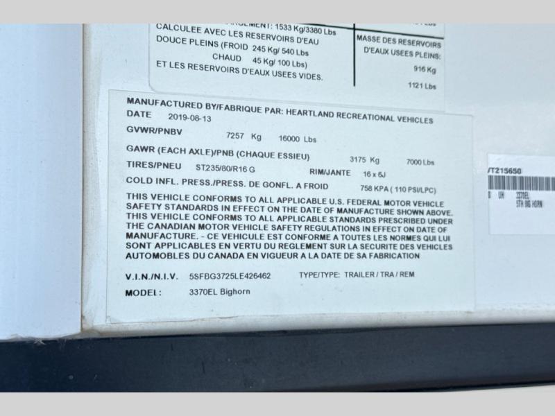 Used 2020 Heartland Bighorn 337 Fifth Wheel