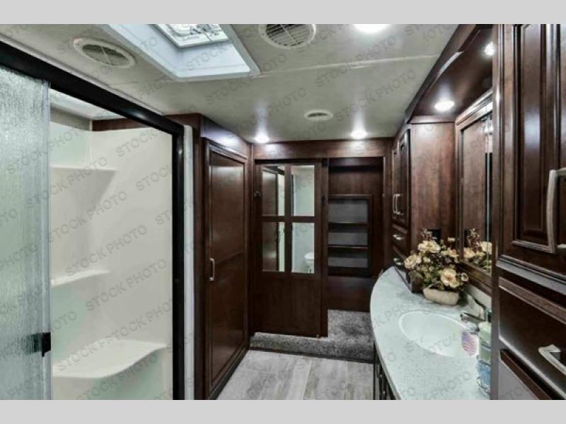 It's time to upgrade your RV, and this Bighorn fifth wheel is just what you've been looking for. You can comfortably sleep four, so invite the grandkids along to make some memories. Prepare breakfast each morning on the three-burner cooktop, and then take it outside to sit under the 20' power awning for some fresh air. Fill your day with hiking, biking, or swimming at the lake before coming back to this unit to get cleaned up at the dual-sink vanity in the huge bathroom within the front master suite. This unit also includes a convenient half bath adjacent to the main living area for your guests.