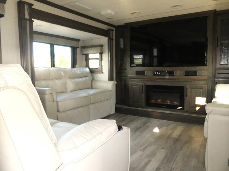 What fun it will be to experience the exclusive list of features found in the Landmark 365 fifth wheels from Heartland RV! You will have smooth rides to every campsite with the 8,000 LB Dexter axles, the 17.5" tires, and the MorRyde suspension system, and the high-gloss fiberglass and frameless dual-pane windows will entice everyone to check out your Landmark 365 as you cruise down the road. The interior is full of fantastic and helpful features, like a ceiling fan, a Dyson cordless vacuum, a First Alert safe, and eight USB outlets. Plus, you will always want to make time to sit back and relax on the power theater seating with heat and massage.