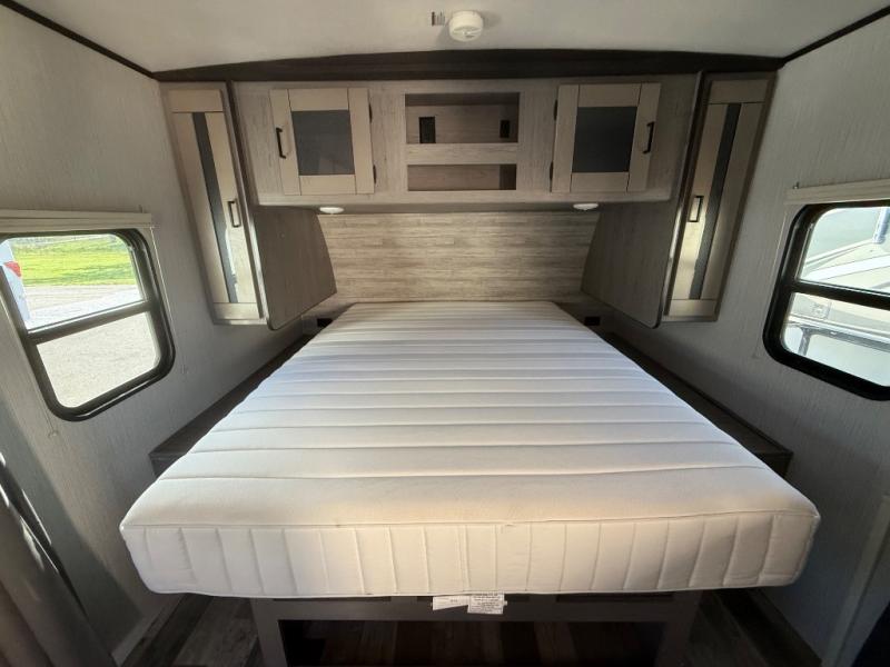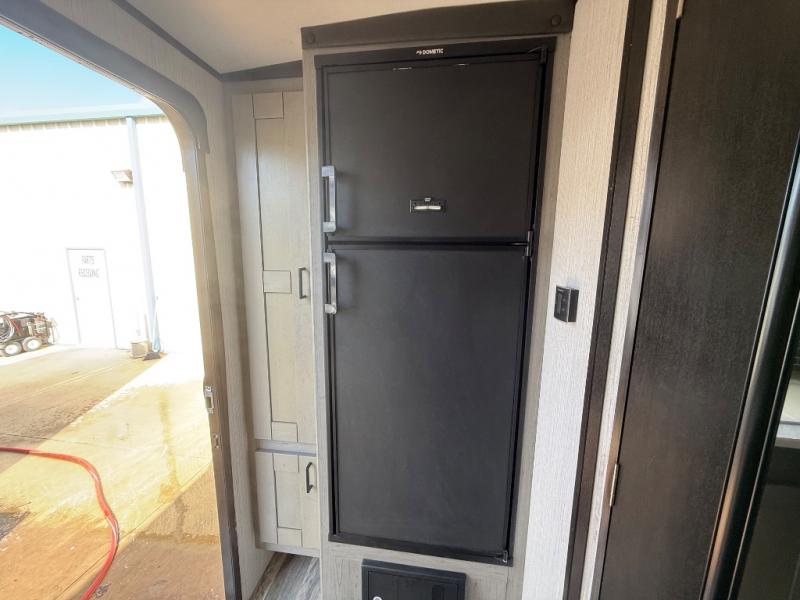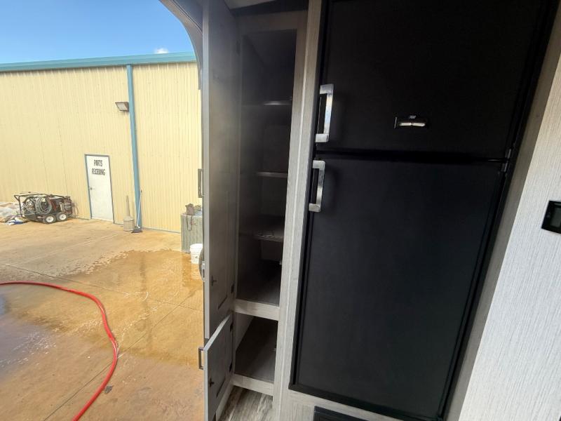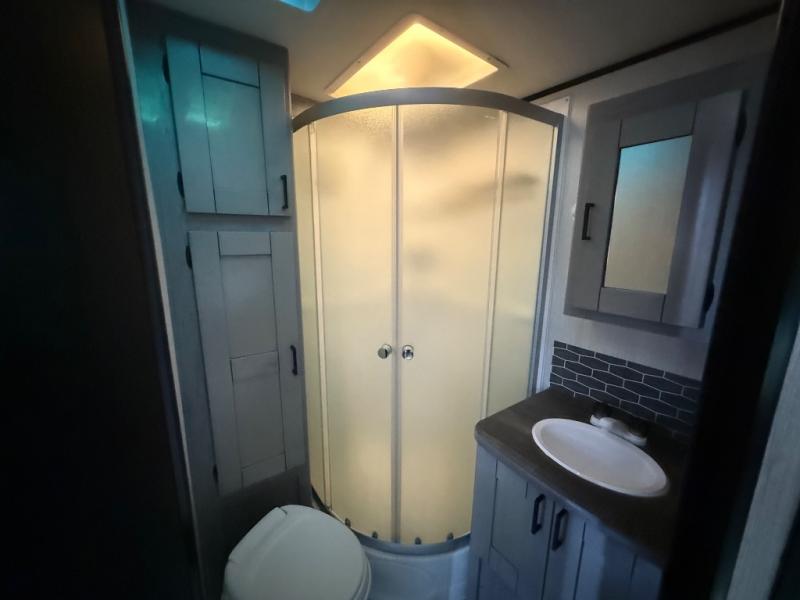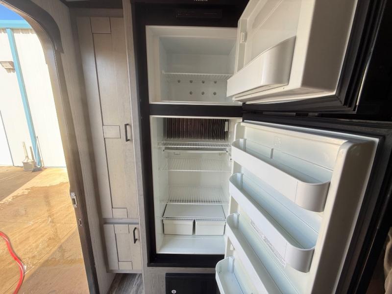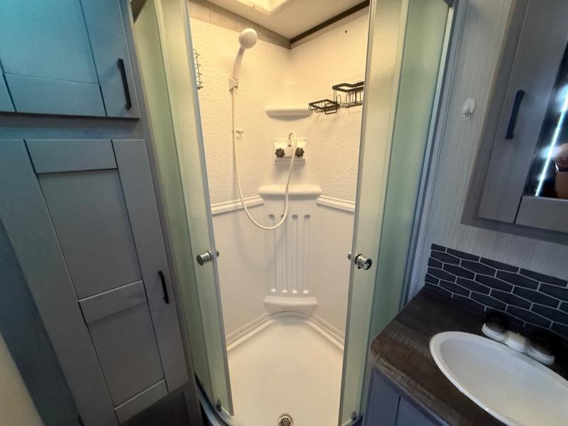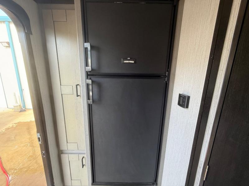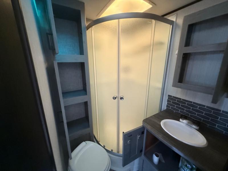 Grab a drink from the 8 cu. ft. refrigerator on your way out to relax under the 12' power awning with LED lighting or take a walk around the campgrounds. You can easily grab your camp chairs from the pass-through storage if you hadn't already brought them out. When you get back, be sure to stop at the full bathroom to get cleaned up before making lunch. You can then dine at the sofa slide with table, take a nap on the king bed, and do whatever is next on your camping list.