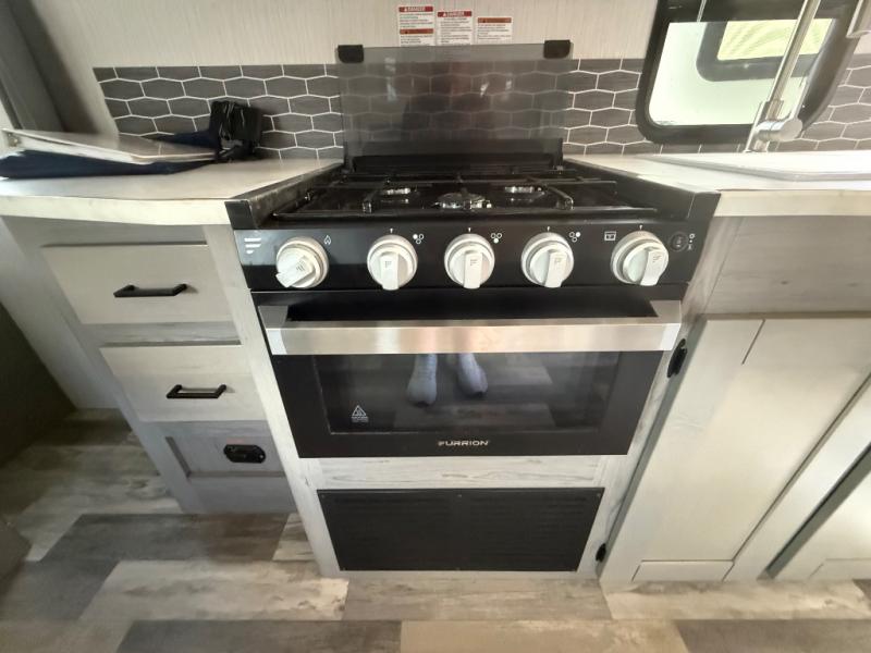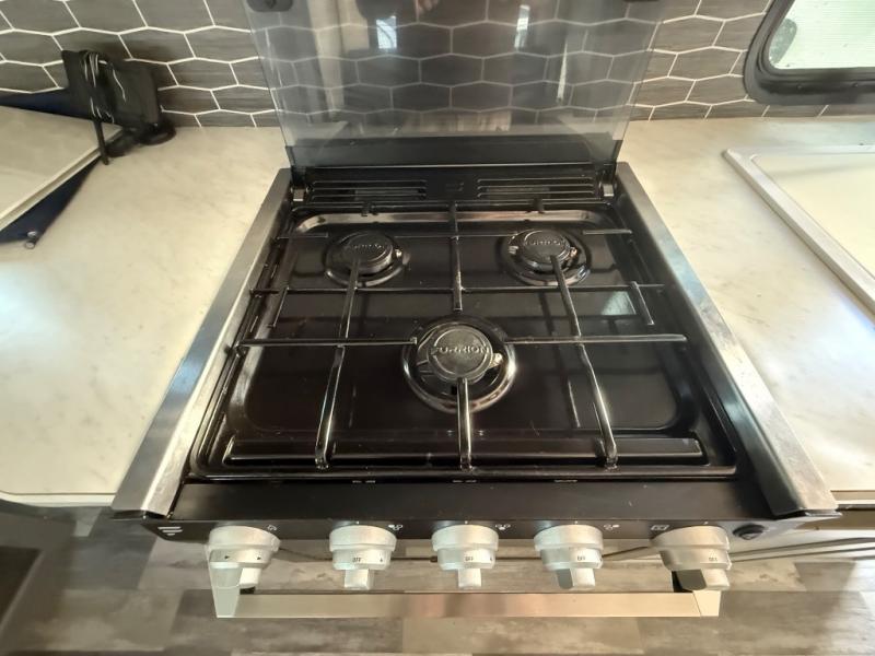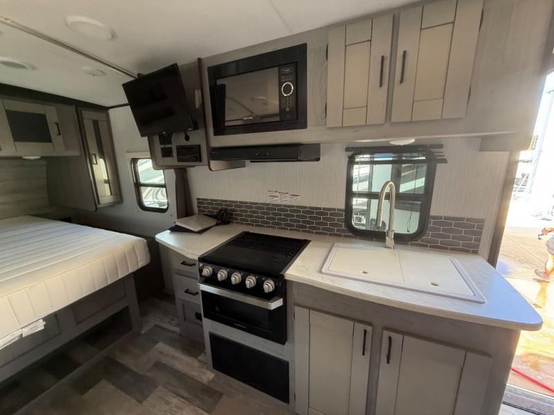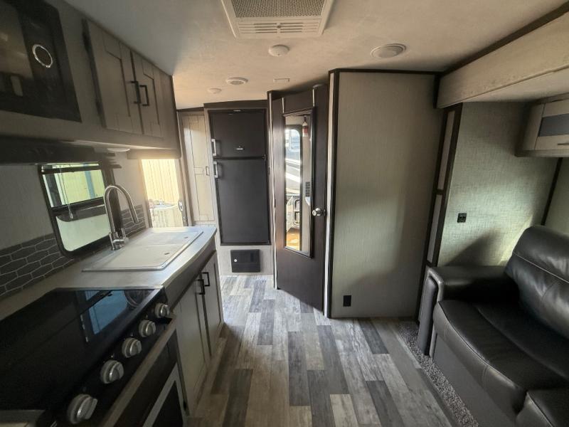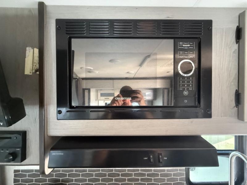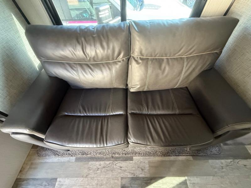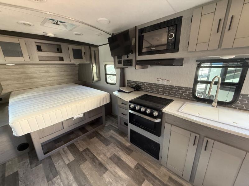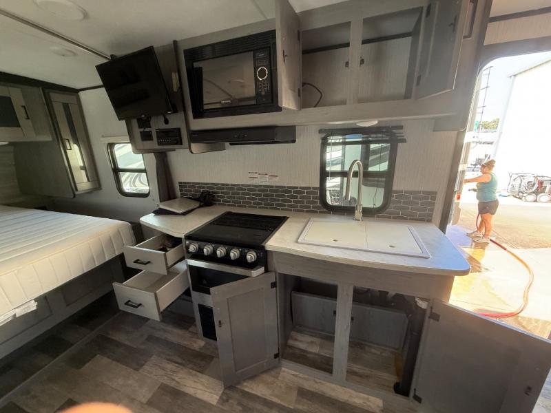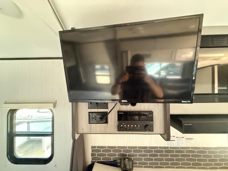 Grab a drink from the 8 cu. ft. refrigerator on your way out to relax under the 12' power awning with LED lighting or take a walk around the campgrounds. You can easily grab your camp chairs from the pass-through storage if you hadn't already brought them out. When you get back, be sure to stop at the full bathroom to get cleaned up before making lunch. You can then dine at the sofa slide with table, take a nap on the king bed, and do whatever is next on your camping list.