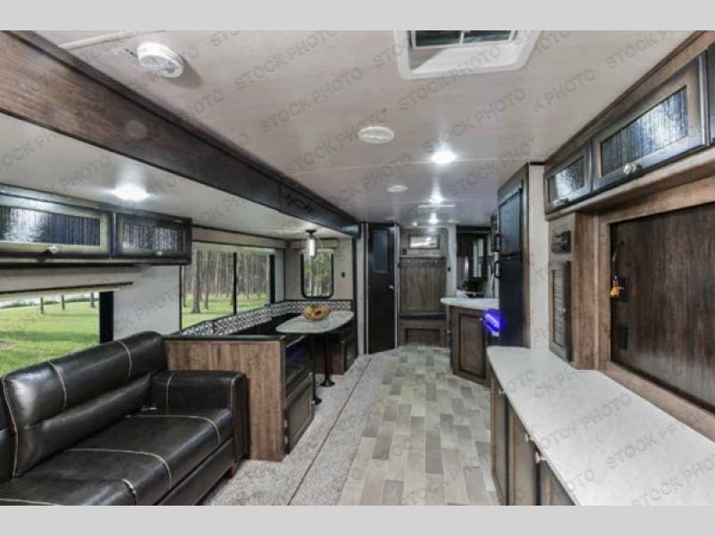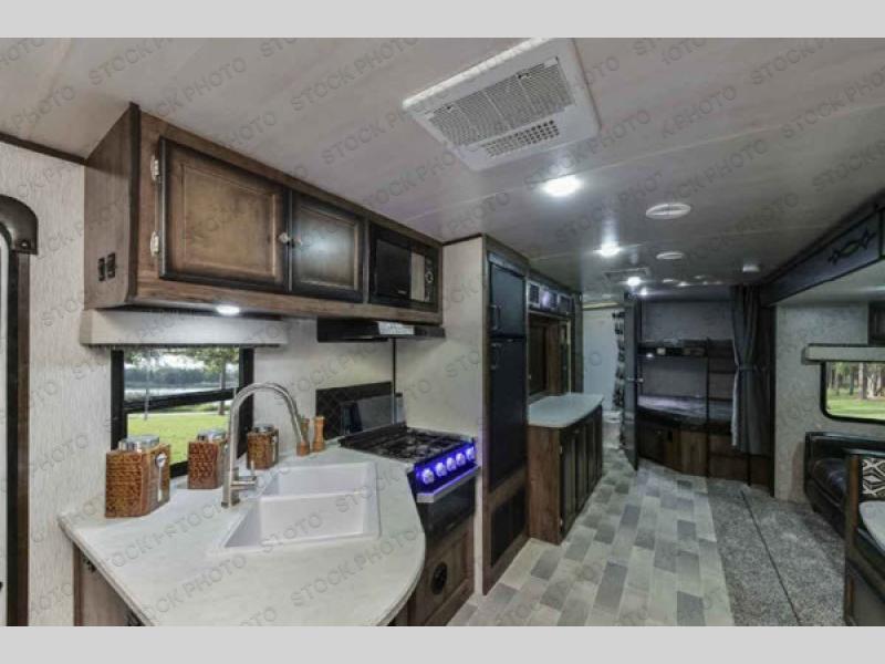 Step into the 2020 Mallard Ultra Lite 312 and you’re welcomed by a bright, open living space designed to feel comfortable from the moment you walk in. The opposing slides create an impressive sense of roominess, giving the main living area a residential flow with plenty of space for relaxing, dining, and entertaining. A well-appointed kitchen sits at the heart of the layout, offering generous counter space, modern appliances, and thoughtful storage that makes everyday cooking feel easy and enjoyable. Large windows invite in natural light, enhancing the warm finishes and creating a welcoming atmosphere that feels like a true home on the road.