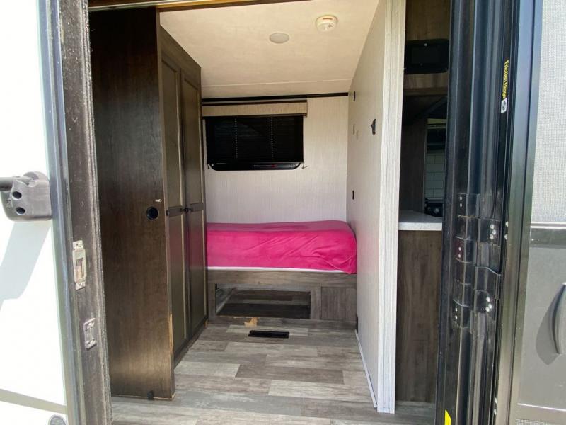 Mid-section bunkhouse plus a loft provide extra sleeping or storage space, making it suitable for kids, guests, or extra passengers.