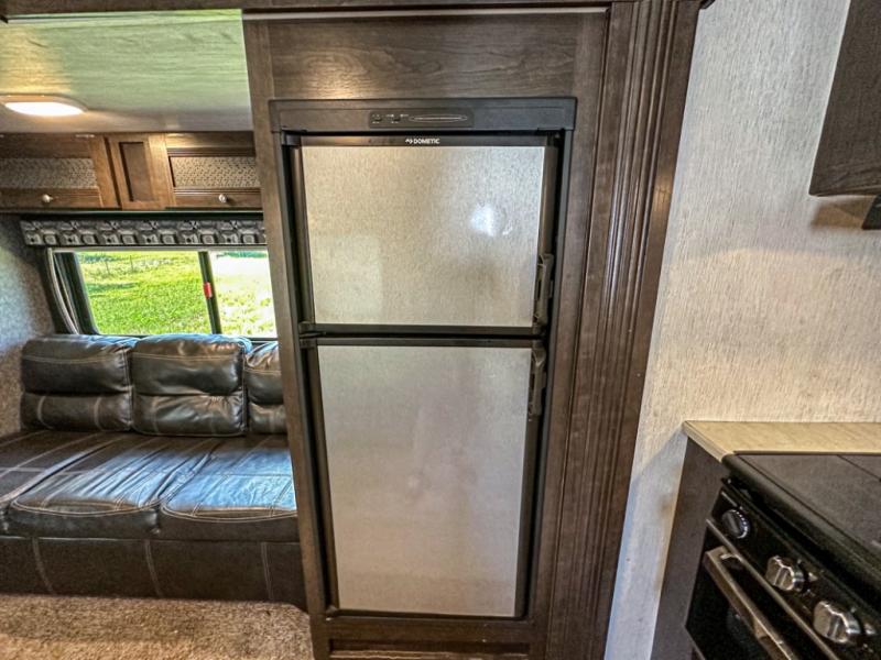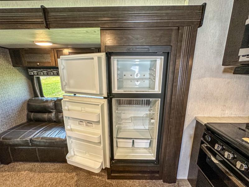 Are you ready to hit the trails and see the world? With this Pioneer travel trailer, you can confidently travel away from home knowing that everything you need will be right at your fingertips. You won't have to search for restaurants because you will be able to create all of your favorite dishes in the full kitchen, and forget about trekking to the public bathroom facilities each morning because the full bathroom with its shower and medicine cabinet will make it easy to prepare yourself for the fun day ahead. As you sit down at the booth dinette to plan out your schedule, you will appreciate how the tinted safety-glass windows will prevent the intense morning sun from heating up the interior.