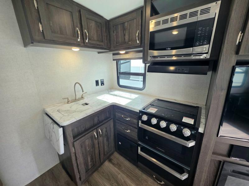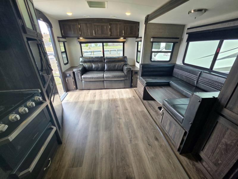 With any Highland Ridge Mesa Ridge Lite model, you will appreciate the ease of towing and the spacious living areas. The weather conditions will not affect how you travel because of the Thermal package that has been included on each Mesa Ridge Lite. Inside, you will enjoy the style and functionality of the crowned ceilings, and you will also appreciate how pet friendly each of these units are with their linoleum flooring, MyPillow pet bed, pull-out pet dishes, pet tie out with bottle opener, and pet kennel door underneath the bed.