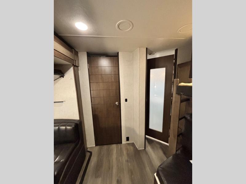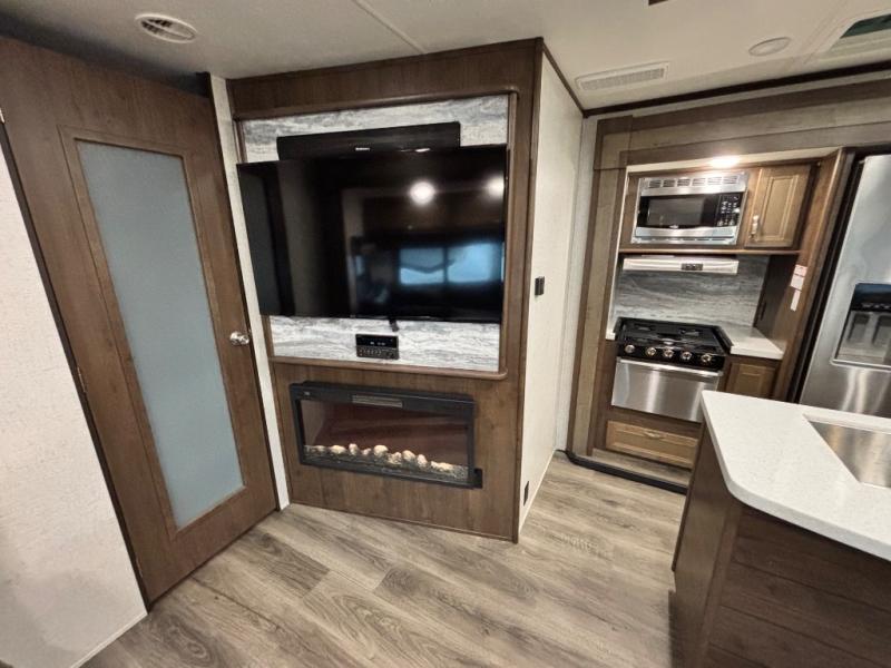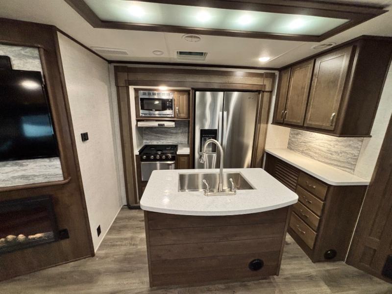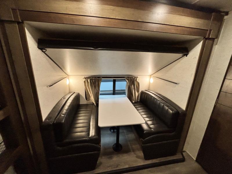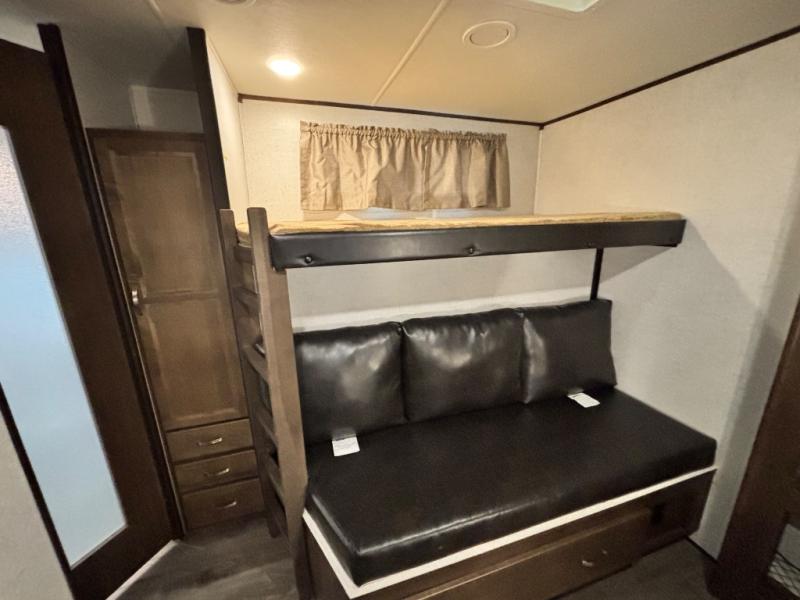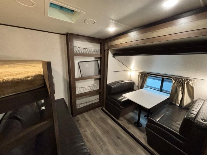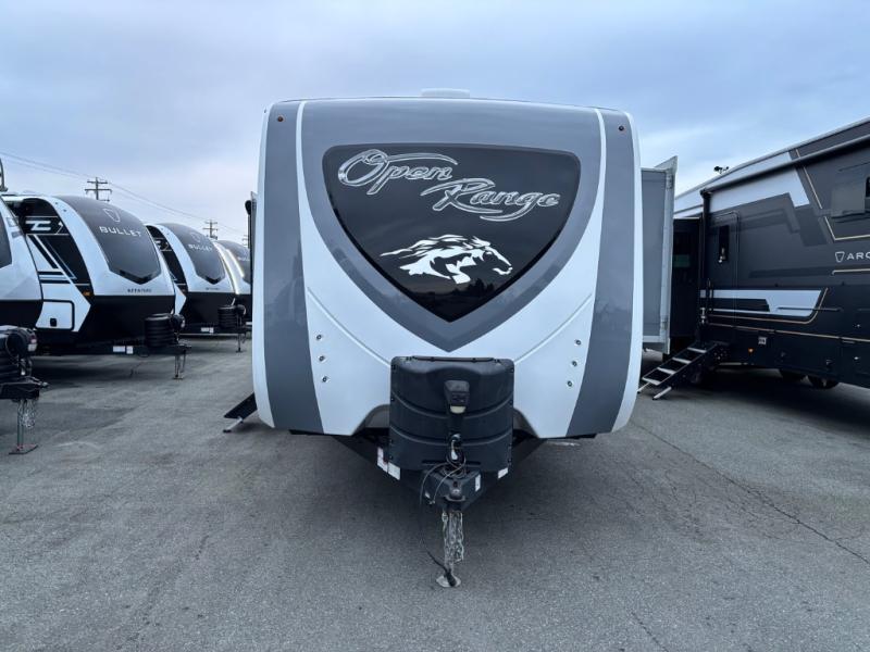 Been searching for the perfect travel trailer for your family that enjoys inside comforts after being outside all day? This Open Range offers a private bunkhouse with a half bath, a dinette, a wardrobe and a hutch that the kids will surely enjoy. You will have the master bedroom with a queen bed on the opposite side to yourself, plus access to full bath. The main kitchen and living area offers a wide open space with dual opposing slides for everyone to gather to make meals, eat, and relax. You will find lots of storage for all your dishes, pots and pans, plus some! The chef can choose to cook inside with full amenities, or outside on the outdoor kitchen. Comfortable, spacious and private, take a look!