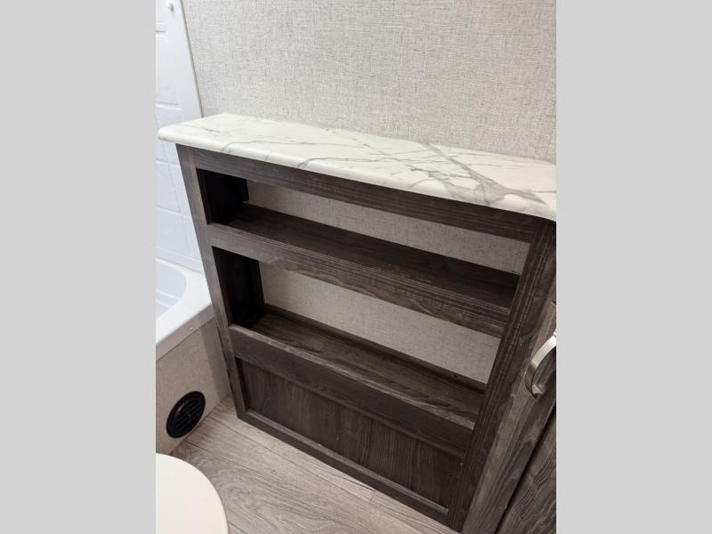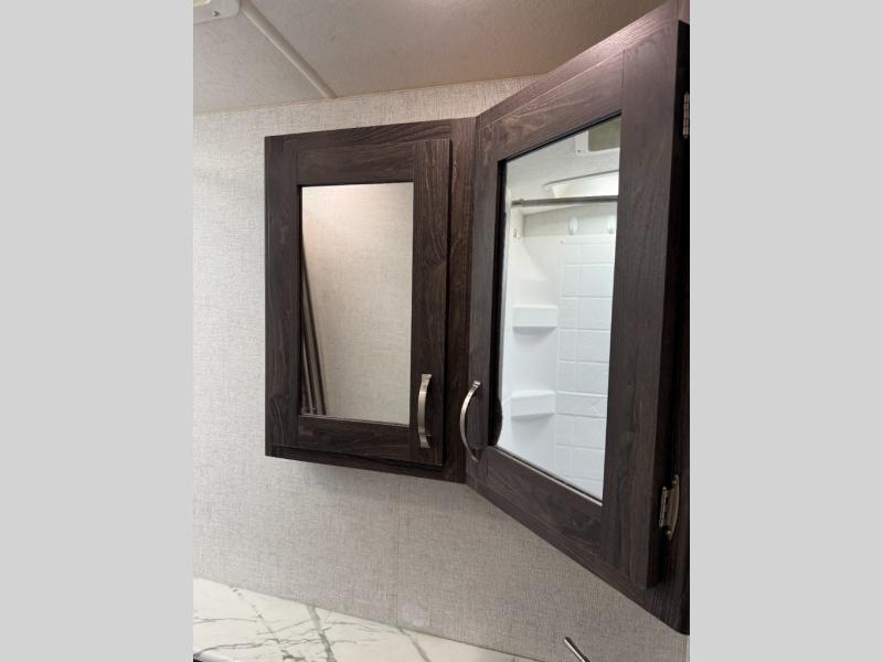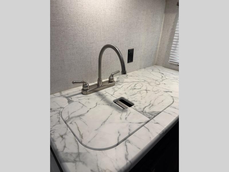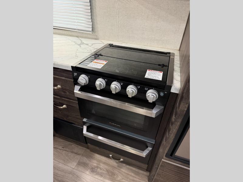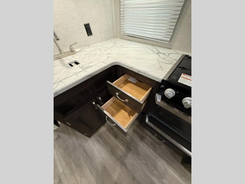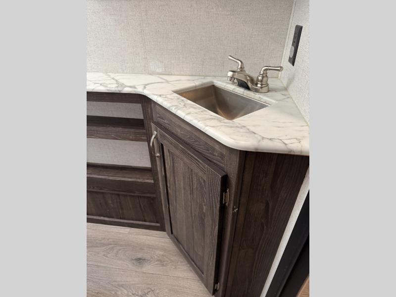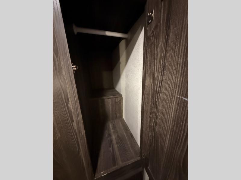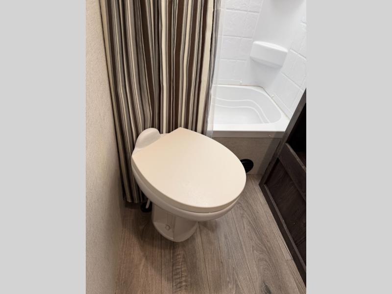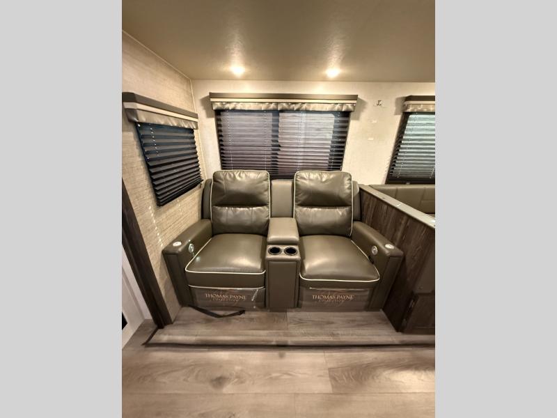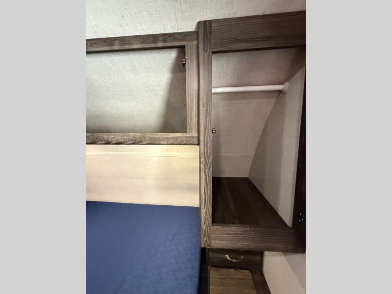 Are you looking for the perfect travel trailer for you and your family, even your pet? From the double size bunks for the kiddos next to the full bathroom to the theater seats and dinette to relax on inside to watch the 39" LED TV, everyone will find their favorite spot for the weekend. The chef in the family can choose to cook inside using the stainless steel appliances or outside with the outdoor kitchen while watching the kids ride their bikes around the campsite. You will find your own sleeping accommodations in the private front bedroom on the queen bed with pet kennel underneath, plus the second entry/exit into the trailer as an added convenience. And the laundry chute, the entry closet, and the power awning will provide even more features you will love.