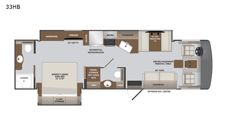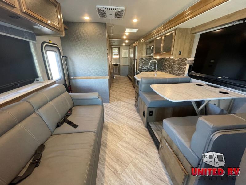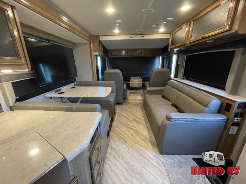 The fun and modern features that have been included in the Invicta Class A gas motorhome from Holiday Rambler will allow you to experience numerous adventures in confidence! You will find a high-tech cab area with a built-in HD radio that has Waze, Spotify, and Amazon Music and an Android Auto or Apple Car Play system with navigation so that you can keep your eyes on the road while you make your way to the campsite. The Invicta also comes with a 100-watt solar panel which will power up the other technological conveniences, like the WiFiRanger Sky4, the Smart/Amazon Fire TV, and the IllumaPlex Multiplex Control system. All of these amazing features are protected by aluminum welded interlocking frames and a powder-coated steel chassis construction that has full-coverage heavy-duty undercoating.