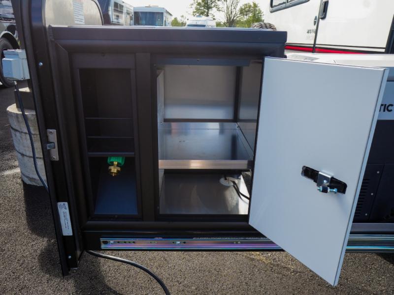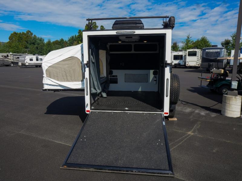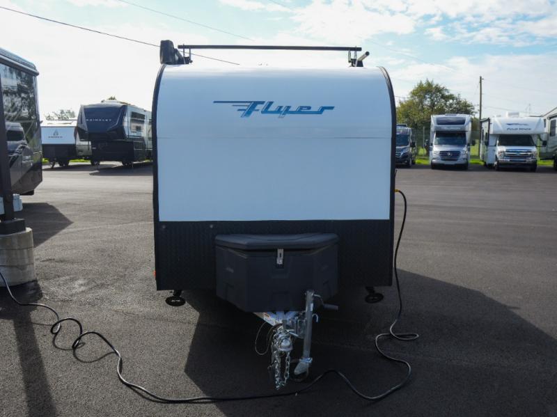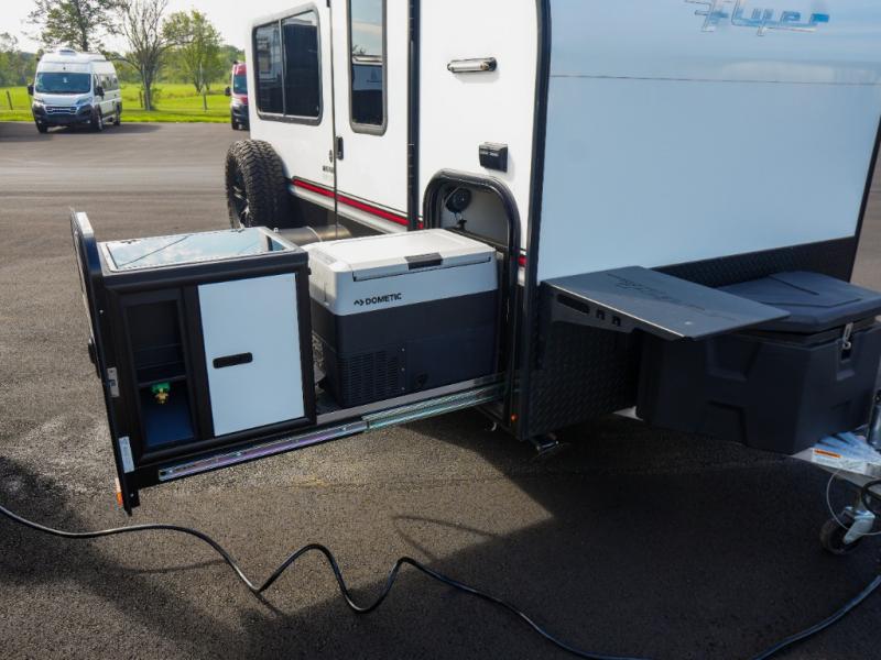 Load up your off-road toys in this Flyer Explore micro-lite toy hauler with six tie-down rings to keep everything secure while moving down the road. Once you have arrived at your destination, the rear ramp door will make loading and unloading super easy, and you have the ability to expand this Flyer model to fit your needs. The optional tip-out bed on either side of the trailer provides a comfortable place to sleep and increases your interior footprint. If you choose the optional kitchen slide out with 12V refrigerator, you can easily whip up meals and snacks in the great outdoors!