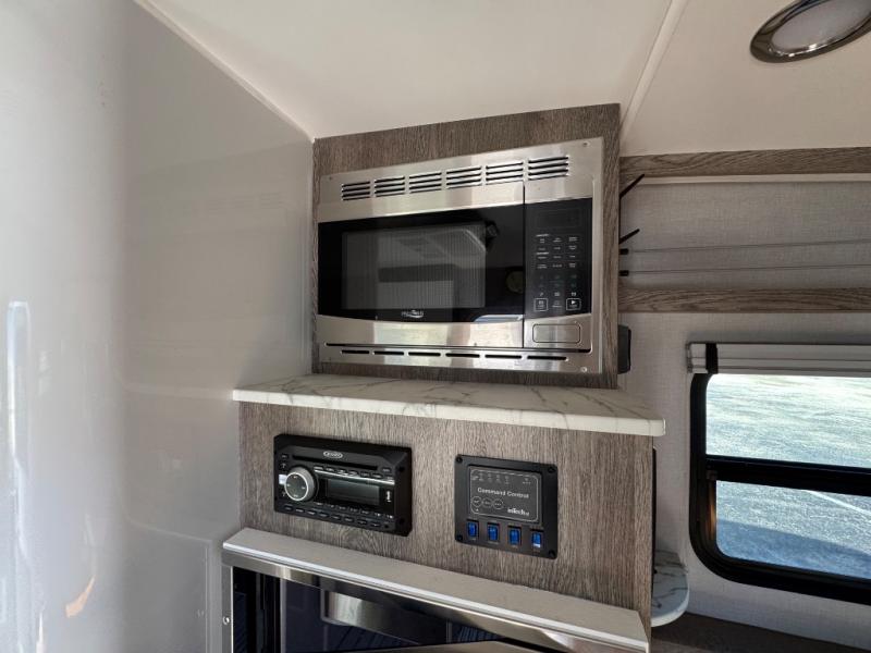 Throughout all of your mountainous excursions or lakeside getaways, you will feel right at home in your inTech RV Sol travel trailer! With its sleek and modern exterior that has been outfitted with fiberglass and covered with LED lighting, you will be the talk of every campground. Both you and your traveling companions will be completely cared for with the propane tank, 6 gallon gas or electric water heater, fresh water tank, and 35 AMP power cord. And for those nights when you just need to relax and unwind from a long day of adventuring, you can switch on the Bluetooth stereo with speakers to listen to your favorite music before bed.