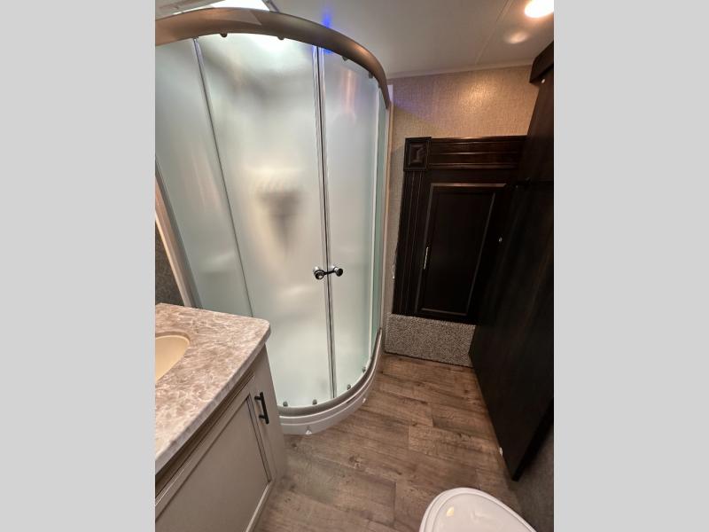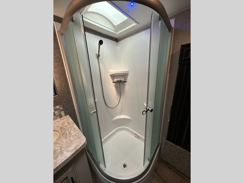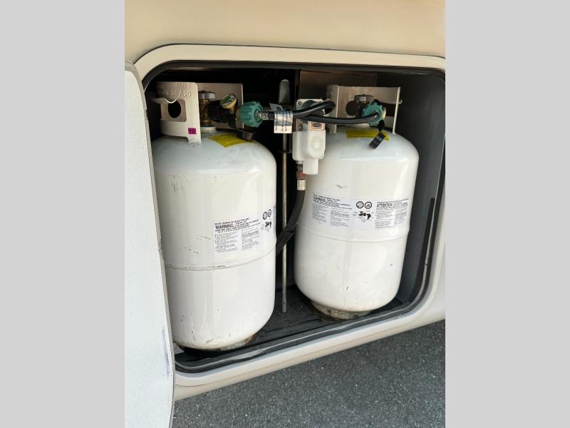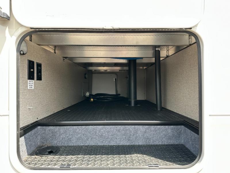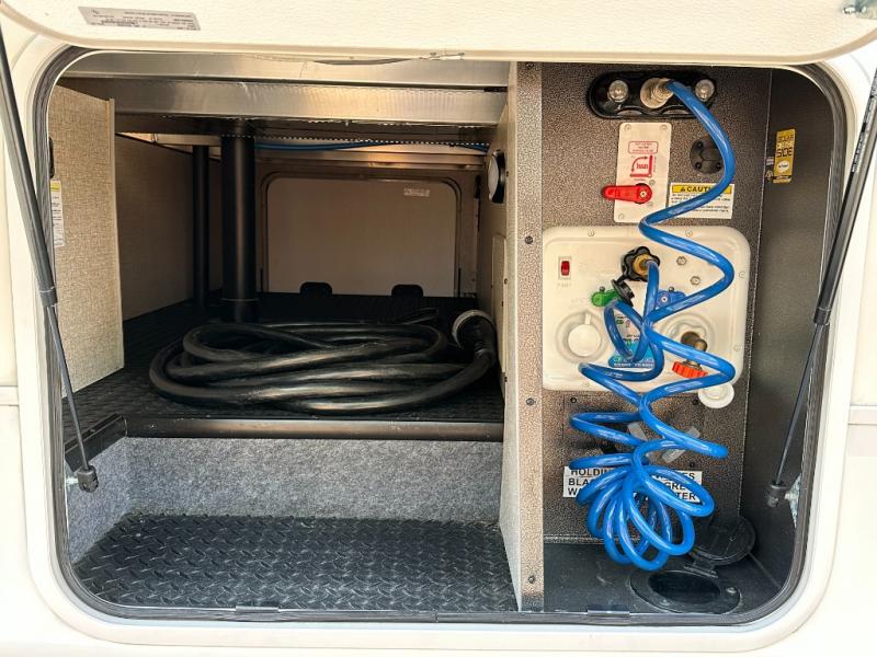 Storage/utility: Pass-through storage with slam-latch baggage doors, quick-connect outside shower, under-mounted spare tire, LP quick-connect for outside grill.