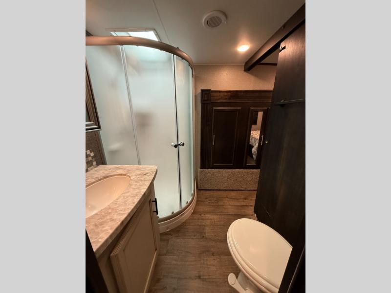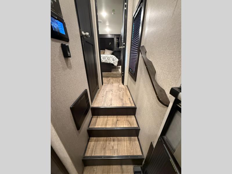 With each Jayco Eagle HT fifth wheel, you can travel with your half-ton truck! The interior offers features such as a residential Serta mattress with under-bed storage, a CPAP-prepped bedroom, large windows, solid hardwood slide fascia, residential flooring made in the U.S.A., and dual USB charging ports in the kitchen and bedroom. The StrongholdVBL aluminum-framed and vacuum-bond laminated gel-coated fiberglass exterior walls including the rear wall and slide room end walls, the fully enclosed and heated underbelly, the industry-exclusive HELIX cooling system, the JaySMART safety markers and reverse travel, and the 4-Star Handling package just makes traveling safer and easier! Choose the model that suits your family's needs and wants, and start camping the right way today!