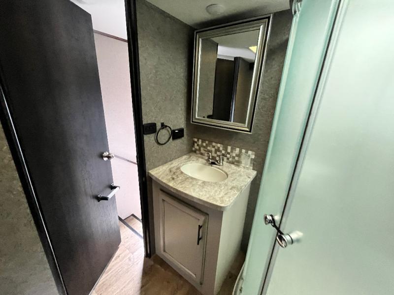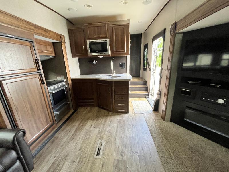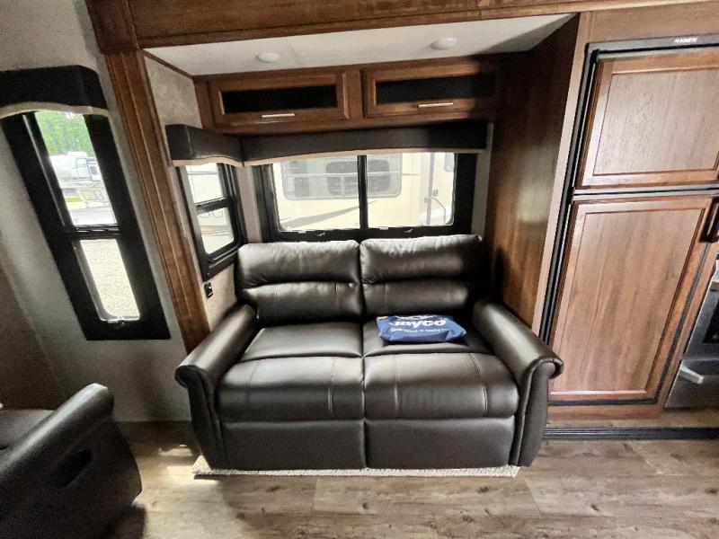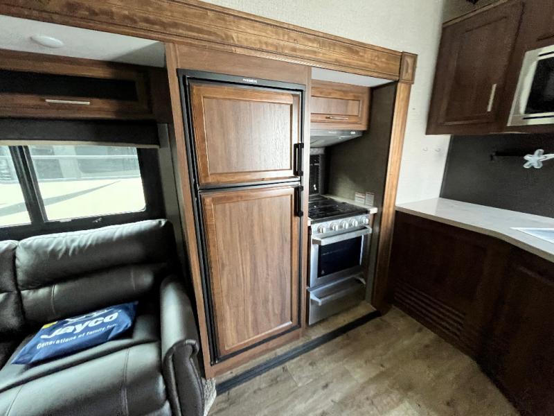 With each Jayco Eagle HT fifth wheel, you can travel with your half-ton truck! The interior offers features such as a residential Serta mattress with under-bed storage, a CPAP-prepped bedroom, large windows, solid hardwood slide fascia, residential flooring made in the U.S.A., and dual USB charging ports in the kitchen and bedroom. The StrongholdVBL aluminum-framed and vacuum-bond laminated gel-coated fiberglass exterior walls including the rear wall and slide room end walls, the fully enclosed and heated underbelly, the industry-exclusive HELIX cooling system, the JaySMART safety markers and reverse travel, and the 4-Star Handling package just makes traveling safer and easier! Choose the model that suits your family's needs and wants, and start camping the right way today!