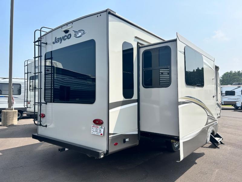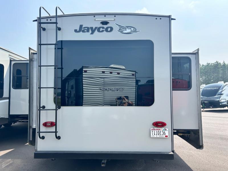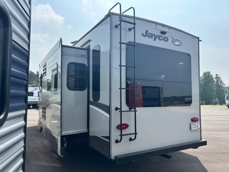 With each Jayco Eagle HT travel trailer, you can travel with your half-ton truck! The interior offers features such as a residential Serta mattress with under-bed storage, a CPAP-prepped bedroom, large windows, solid hardwood slide fascia, residential flooring made in the U.S.A., and dual USB charging ports in the kitchen and bedroom. The StrongholdVBL aluminum-framed and vacuum-bond laminated gel-coated fiberglass exterior walls including the rear wall and slide room end walls, the fully enclosed and heated underbelly, the industry-exclusive HELIX cooling system, the JaySMART safety markers and reverse travel, and the 4-Star Handling package just makes traveling safer and easier! Choose the model that suits your family's needs and wants, and start camping the right way today!