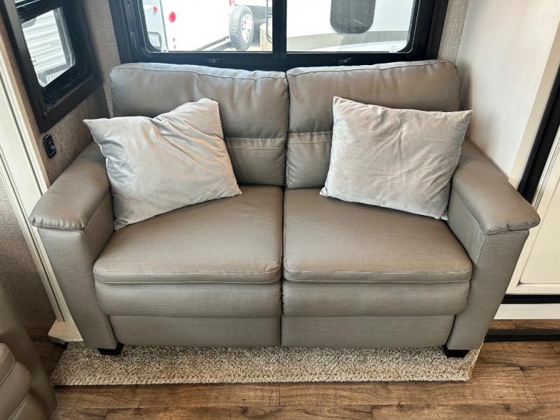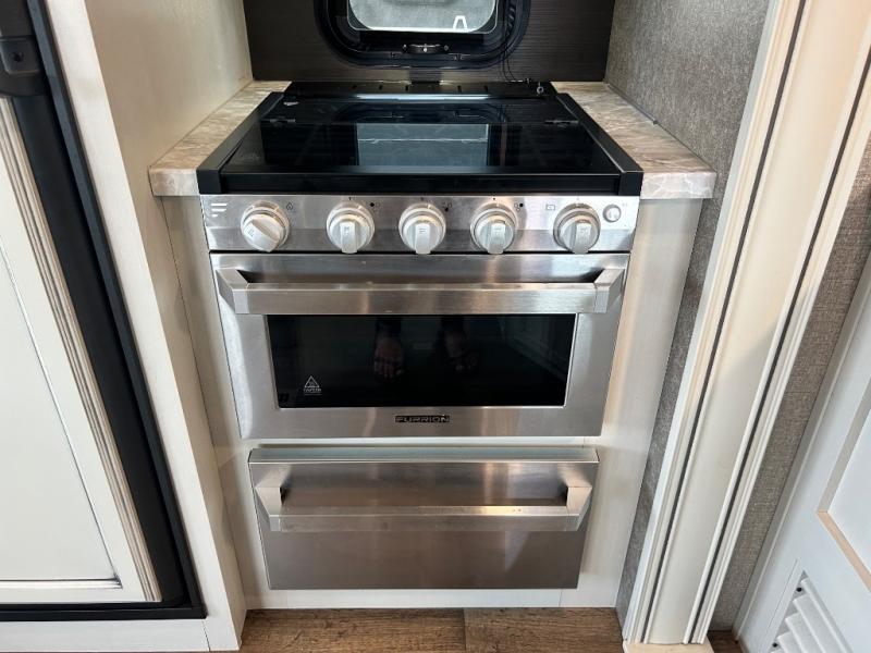 This popular half-ton towable, open-concept Eagle HT travel trailer allows you to relax and unwind after being outside all day. The two opposing slides open up the main area giving you plenty of space to make meals with the stainless steel appliances, watch the LED HDTV, dine at the free-standing table, and relax on the sofa or in a recliner. You can sleep in your own queen bed, get cleaned up in the full bathroom, and relax outside under the 13' electric awning with LED lights. And this shorter-length trailer fits well in state and national park campsites.