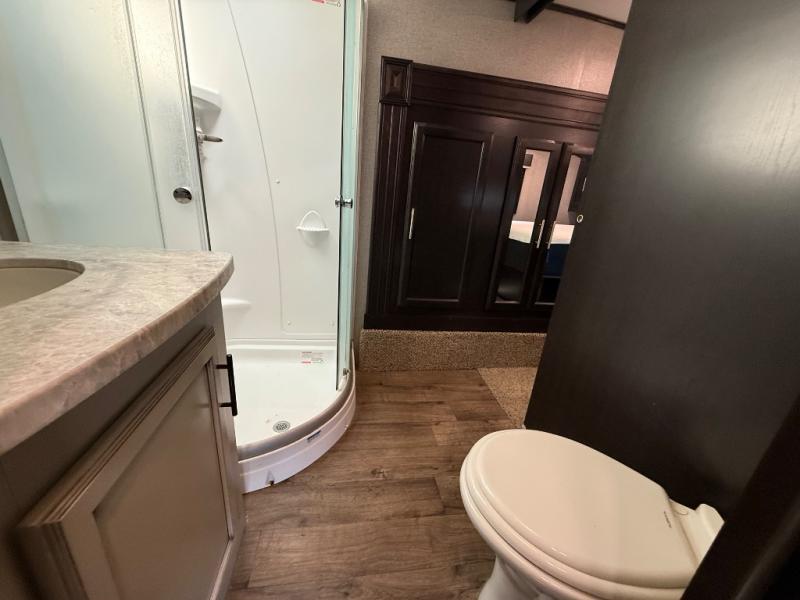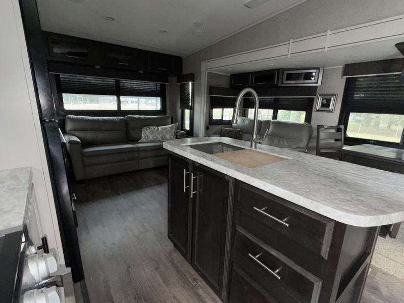With each Jayco Eagle HT fifth wheel, you can travel with your half-ton truck! The interior offers features such as a residential Serta mattress with under-bed storage, a CPAP-prepped bedroom, large windows, solid hardwood slide fascia, residential flooring made in the U.S.A., and dual USB charging ports in the kitchen and bedroom. The Stronghold VBL aluminum-framed and vacuum-bond laminated gel-coated fiberglass exterior walls including the rear wall and slide room end walls, the fully enclosed and heated underbelly, the industry-exclusive HELIX cooling system, the JaySMART safety markers and reverse travel, and the 4-Star Handling package just makes traveling safer and easier! Choose the model that suits your family's needs and wants and start camping the right way today!