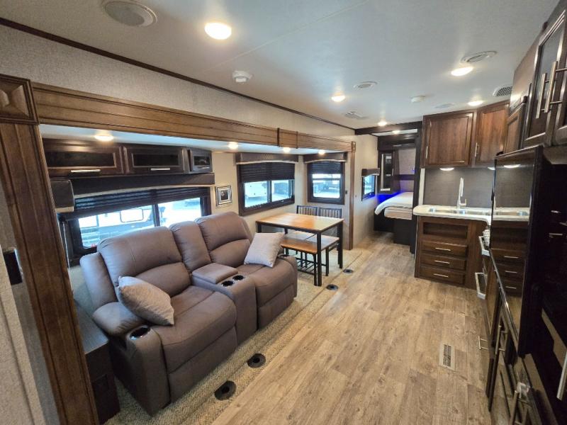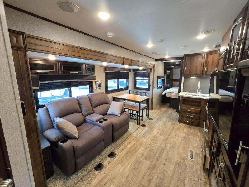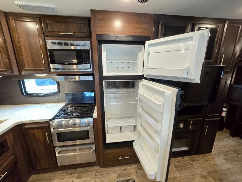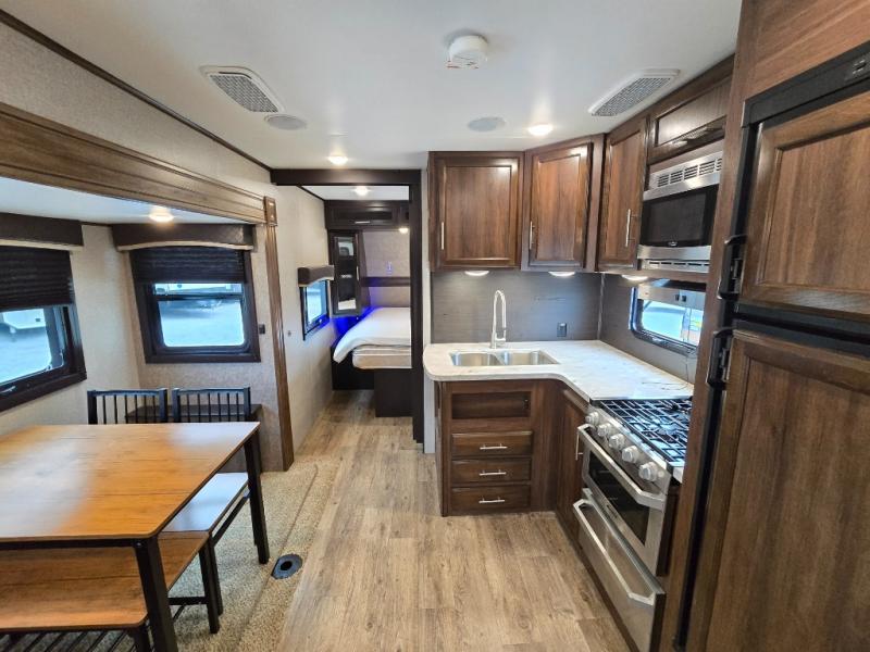 With each Jayco Eagle HT travel trailer, you can travel with your half-ton truck! The interior offers features such as a residential Serta mattress with under-bed storage, a CPAP-prepped bedroom, large windows, solid hardwood slide fascia, residential flooring made in the U.S.A., and dual USB charging ports in the kitchen and bedroom. The StrongholdVBL aluminum-framed and vacuum-bond laminated gel-coated fiberglass exterior walls including the rear wall and slide room end walls, the fully enclosed and heated underbelly, the industry-exclusive HELIX cooling system, the JaySMART safety markers and reverse travel, and the 4-Star Handling package just makes traveling safer and easier! Choose the model that suits your family's needs and wants, and start camping the right way today!