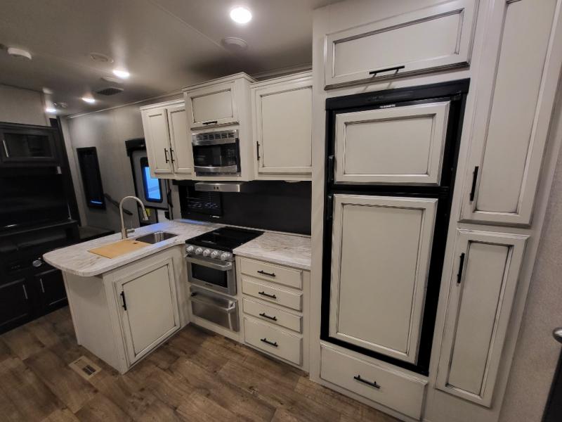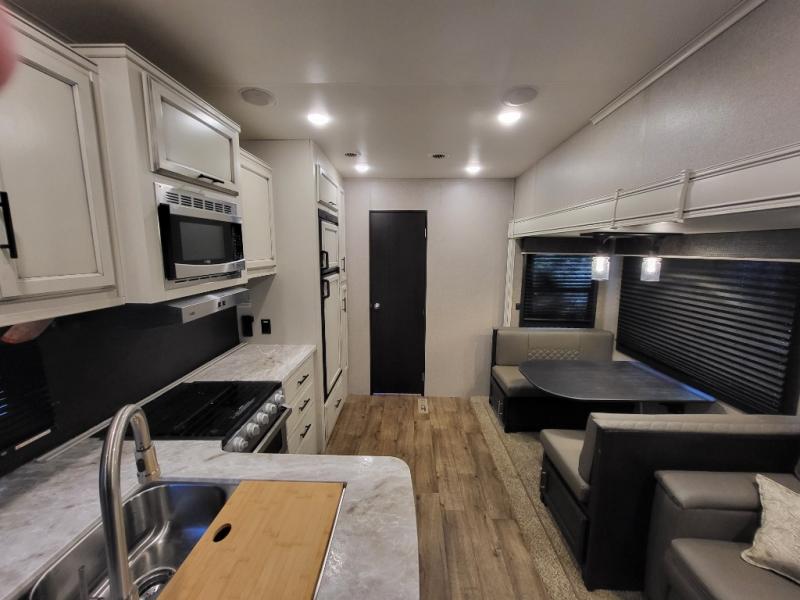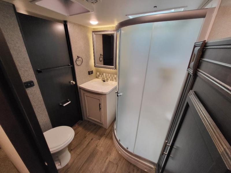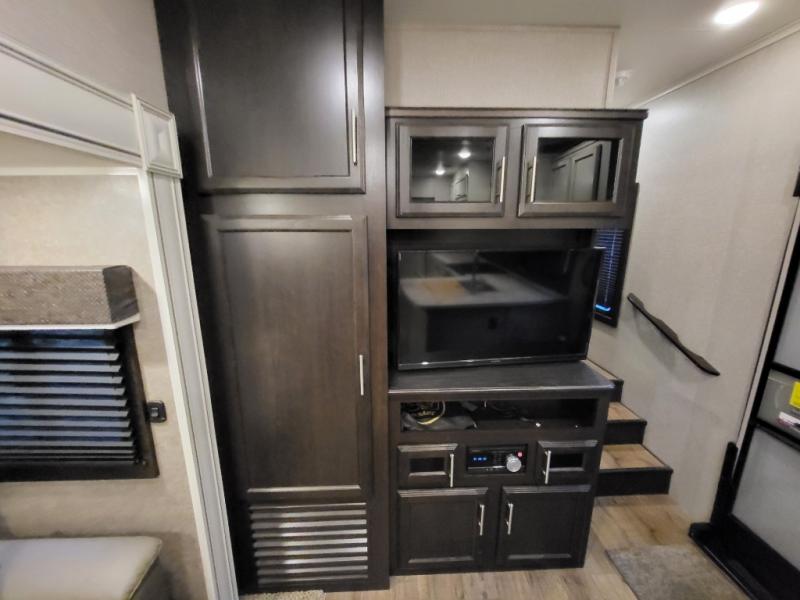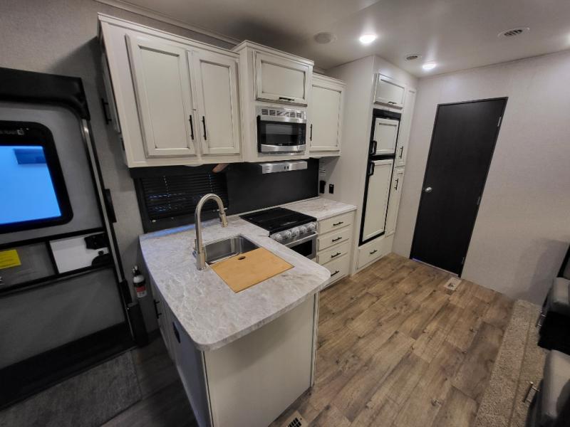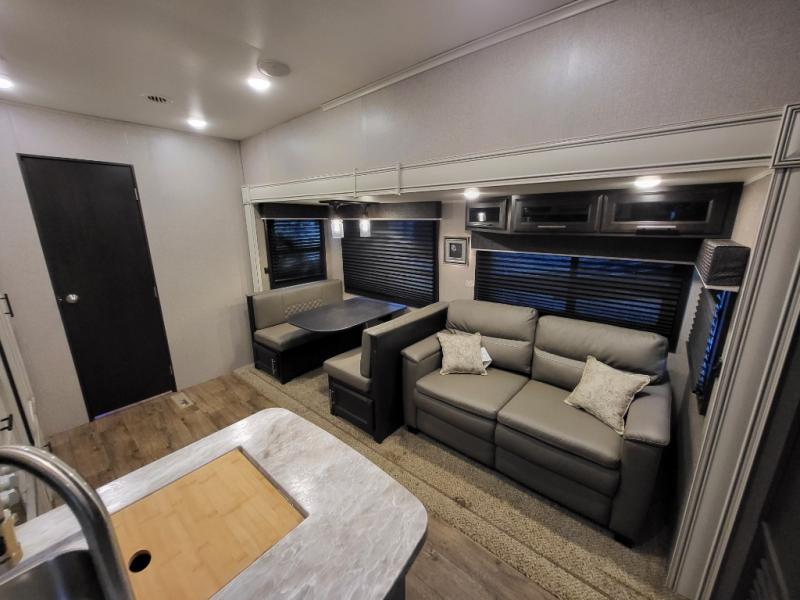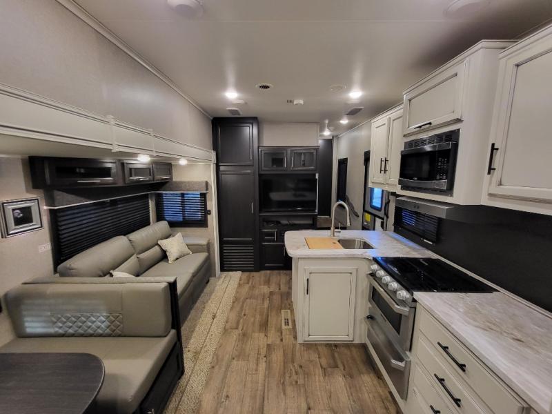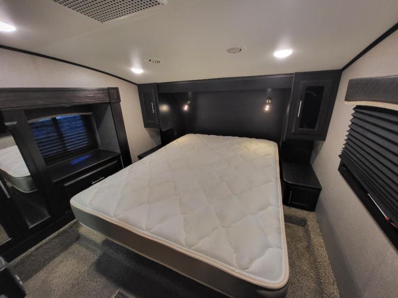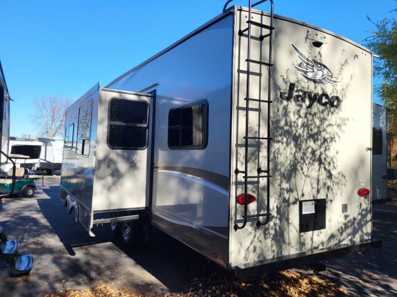 With each Jayco Eagle HT fifth wheel, you can travel with your half-ton truck! The interior offers features such as a residential Serta mattress with under-bed storage, a CPAP-prepped bedroom, large windows, solid hardwood slide fascia, residential flooring made in the U.S.A., and dual USB charging ports in the kitchen and bedroom. The StrongholdVBL aluminum-framed and vacuum-bond laminated gel-coated fiberglass exterior walls including the rear wall and slide room end walls, the fully enclosed and heated underbelly, the industry-exclusive HELIX cooling system, the JaySMART safety markers and reverse travel, and the 4-Star Handling package just makes traveling safer and easier! Choose the model that suits your family's needs and wants, and start camping the right way today!