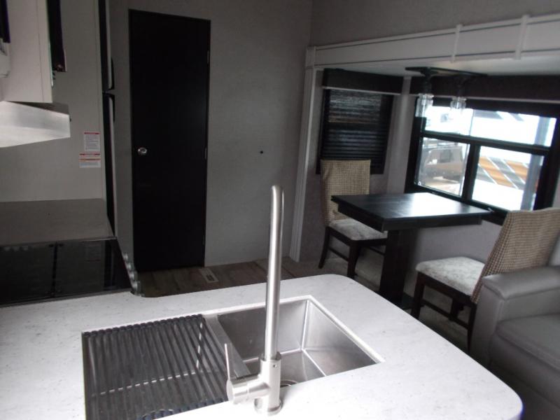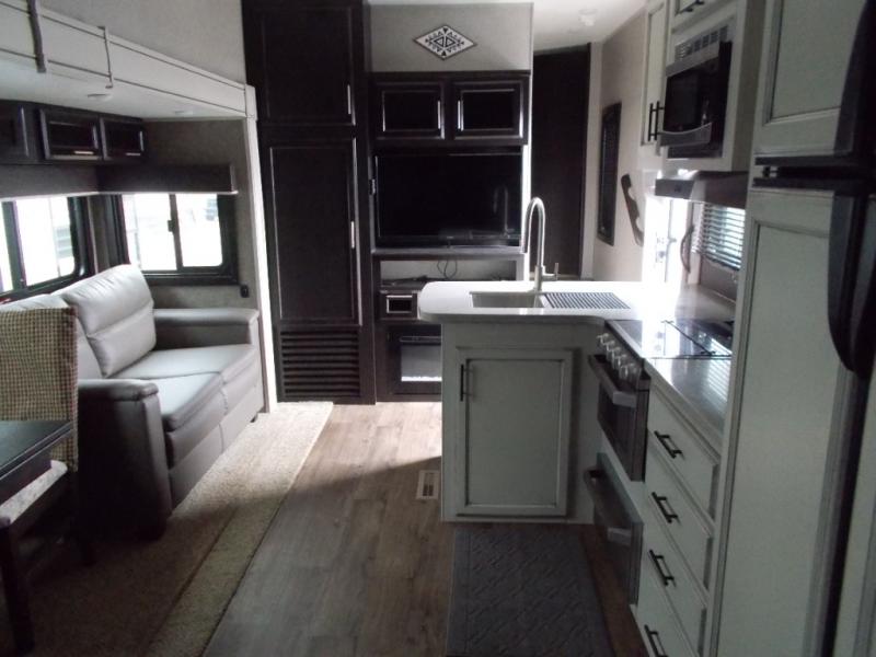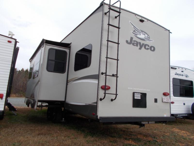 With each Jayco Eagle HT fifth wheel, you can travel with your half-ton truck! The interior offers features such as a residential Serta mattress with under-bed storage, a CPAP-prepped bedroom, large windows, solid hardwood slide fascia, residential flooring made in the U.S.A., and dual USB charging ports in the kitchen and bedroom. The StrongholdVBL aluminum-framed and vacuum-bond laminated gel-coated fiberglass exterior walls including the rear wall and slide room end walls, the fully enclosed and heated underbelly, the industry-exclusive HELIX cooling system, the JaySMART safety markers and reverse travel, and the 4-Star Handling package just makes traveling safer and easier! Choose the model that suits your family's needs and wants, and start camping the right way today!