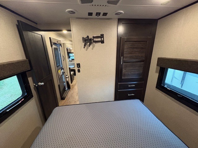 With each Jayco Eagle HT travel trailer, you can travel with your half-ton truck! The interior offers features such as a residential Serta mattress with under-bed storage, a CPAP-prepped bedroom, large windows, solid hardwood slide fascia, residential flooring made in the U.S.A., and dual USB charging ports in the kitchen and bedroom. The StrongholdVBL aluminum-framed and vacuum-bond laminated gel-coated fiberglass exterior walls including the rear wall and slide room end walls, the fully enclosed and heated underbelly, the industry-exclusive HELIX cooling system, the JaySMART safety markers and reverse travel, and the 4-Star Handling package just makes traveling safer and easier! Choose the model that suits your family's needs and wants, and start camping the right way today!