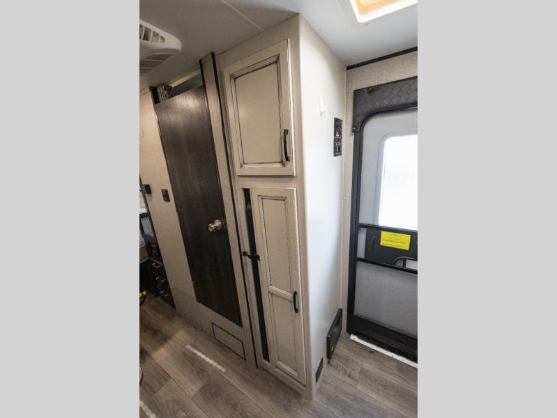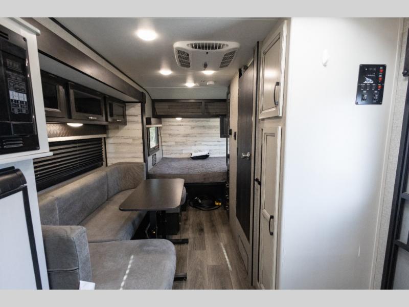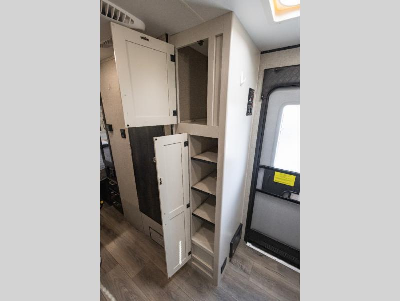 One look inside this travel trailer and you'll be hooked. After setting up camp and stretching your legs around the campgrounds, prepare a quick lunch in the convection microwave and you can enjoy it around the U-shaped dinette. This area will also be prefect for game night and additional sleeping space. The rear kitchen features extra counter space and you'll appreciate the pantry for dry good and snacks. Clean up in the wet bath after a day outside and the front queen bed with a privacy curtain will provide a great night's rest.