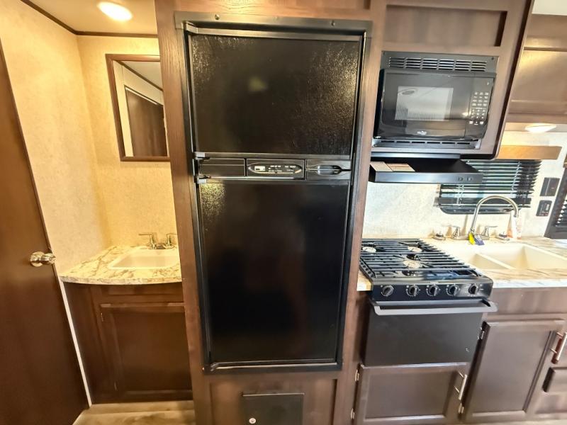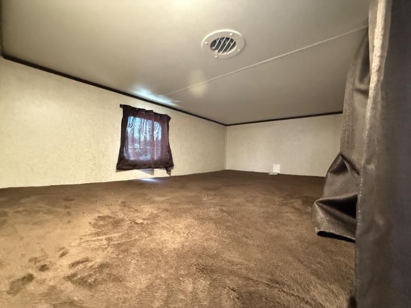 What a difference it will make when you take this Jay Flight travel trailer with you to the campsite! You will have loads of helpful amenities to make every task enjoyable, like a three-burner range in the kitchen, a queen Serta mattress in the bedroom, and a pass-through storage on the exterior. Plus, the set of double-size bunks are so convenient because they give you extra sleeping space without taking up too much interior living space.