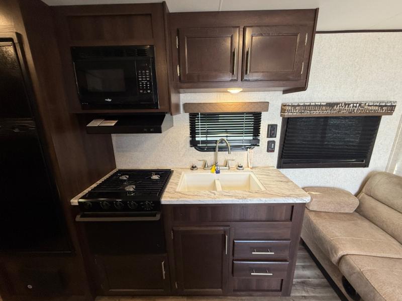 As the best-selling travel trailer in America, the Jayco Jay Flight travel trailer features all that you need for reliable, comfortable, and accommodating adventures! The American-made Goodyear tires, Dexter axles with Nev-R-Adjust brakes, and E-Z Lube hubs are what make it a dream to tow the Jay Flight, and the fully integrated A-frame and Magnum Truss roof system create a foundation that will last for years to come. Make your time spent at the campground an enjoyable one by using the power awning with LED lights and speakers as you sit around in some lawn chairs and share ghost stories by the campfire. Plus, if your hands get sticky from the roasted marshmallows, you can use the outside shower to rinse them off.
