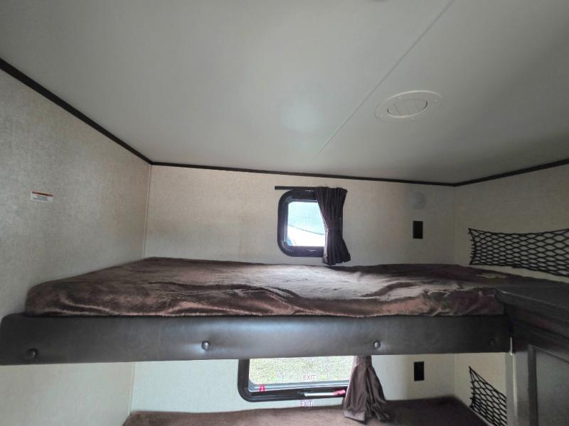As the best-selling travel trailer in America, the Jayco Jay Flight travel trailer features all that you need for reliable, comfortable, and accommodating adventures! The American-made Goodyear tires, Dexter axles with Nev-R-Adjust brakes, and E-Z Lube hubs are what make it a dream to tow the Jay Flight, and the fully integrated A-frame and Magnum Truss roof system create a foundation that will last for years to come. Make your time spent at the campground an enjoyable one by using the power awning with LED lights and speakers as you sit around in some lawn chairs and share ghost stories by the campfire. Plus, if your hands get sticky from the roasted marshmallows, you can use the outside shower to rinse them off.