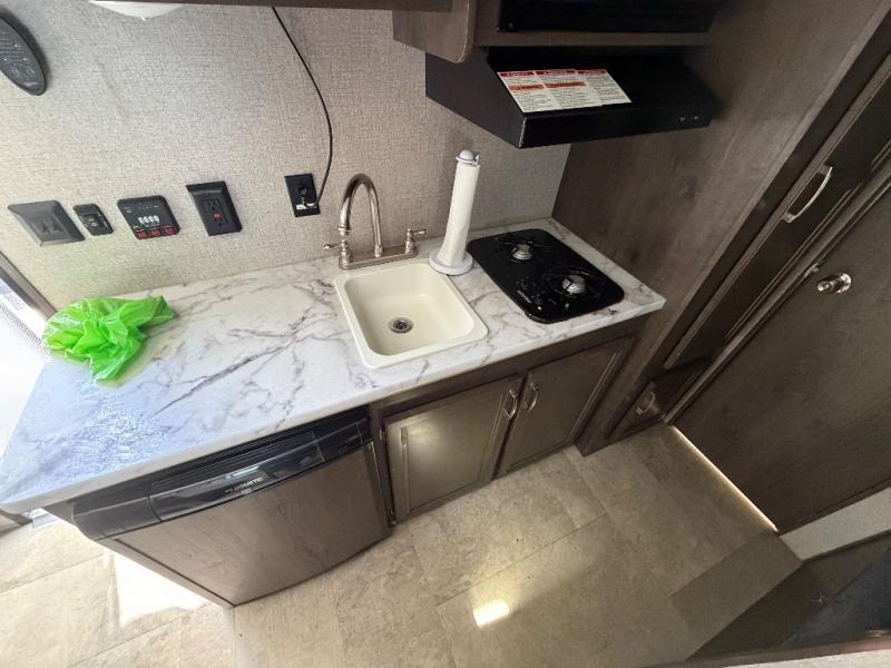 A great choice for your family of five is this Jay Flight SLX 7 travel trailer! The bunk beds and queen-size bed provide a comfortable spot for you to sleep at night, and a fifth camper can be comfortable on the booth dinette once it has been folded down into a bed. Grabbing a bite to eat is simple with the two-burner range and microwave oven. Pop a bag of popcorn in the microwave for a late-night snack and enjoy a card game or two inside at the table. The 10' electric awning with LED lighting will provide a great outdoor space both day and night.