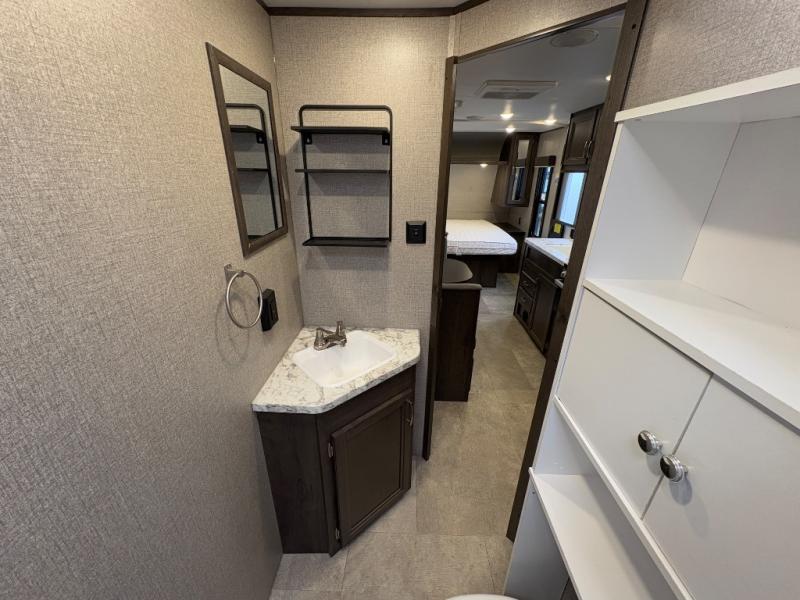 Each Jay Flight SLX 8 travel trailer by Jayco includes the Magnum Truss Roof system which provides seamless DiFlex II material on the roof and plywood decking, and a fully integrated A-frame and I-class cambered structural steel I-beams which is built to last! The roof-mounted air conditioner will come in handy during the hotter months, and the two propane bottles will help keep your showers hot and your meals warm! And when you need to rinse off yourself, your bikes, or the gear, the outdoor shower will do the trick. Choose the floorplan that fits your adventurous side, and load up the family for fun!