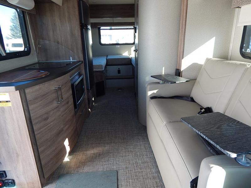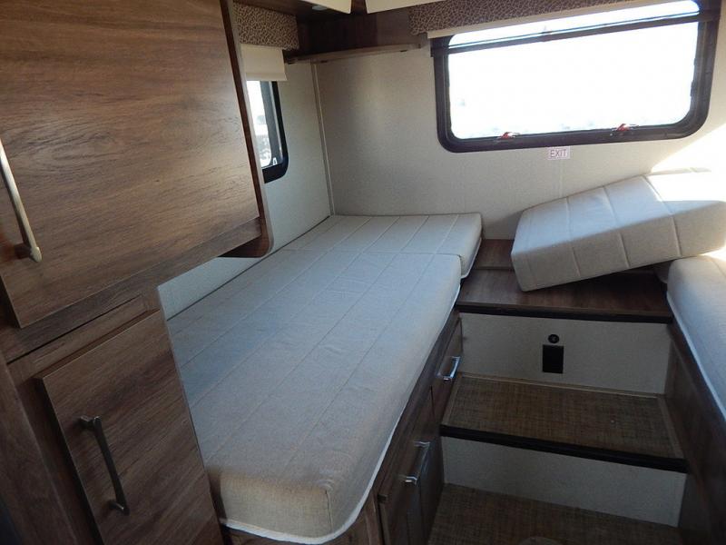 No worries about storage when you are traveling in this coach. You will find overhead cabinets, a wardrobe, and a 6 cu. ft. refrigerator. And you will love having twin beds to sleep on with floor space in between to easily get up to take a nighttime break in the full bathroom. And if the grandkids join you, they can sleep on the cab-over bunk with 750 lb. capacity, and on the sofa slide out. The Ultra leather captain's chairs swivel to provide more seating, and the kitchen offers everything you will need to make warm meals. And if the weather is just right then relax under the 14' awning during the day or night.