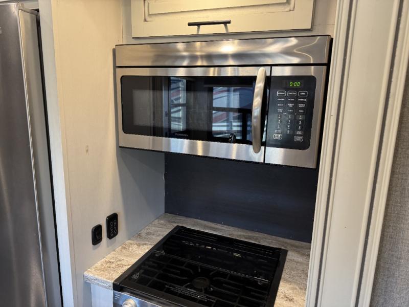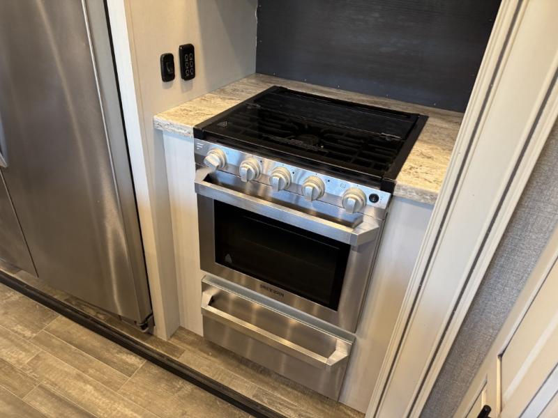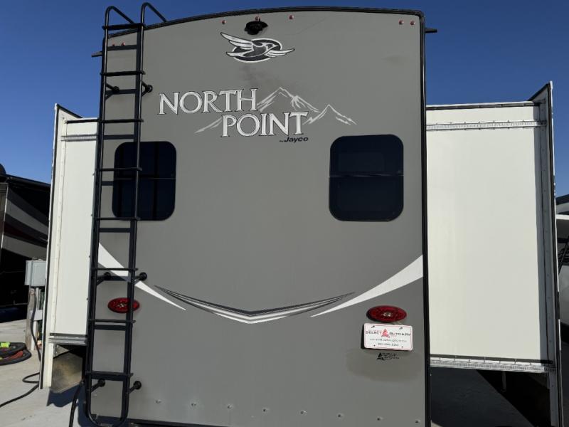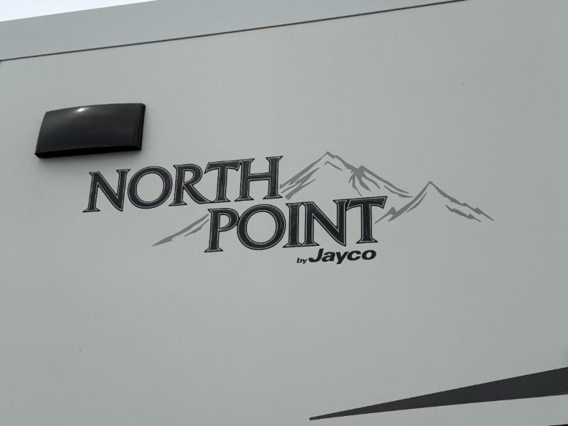 The North Point fifth wheels from Jayco provide you with the best combination of luxury and practicality! The 5-Star Handling Package gives these units smooth towing with Goodyear Endurance tires and Dexter axles with Nev-R-Adjust brakes and E-Z Lube hubs. You will also find unmistakable elegance all throughout the interior with an LED fireplace, Bellavati countertops, an integrated sound bar, and a stone and glass tile backsplash in the bathroom. Plus, you will also find a central vacuum system to make it easier to clean the Shaw residential carpeting with stain guard while you are away.