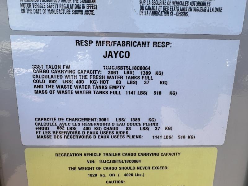 Used 2020 Jayco Talon 335T ( L18C ) with a Generator Toy Hauler Fifth Wheel