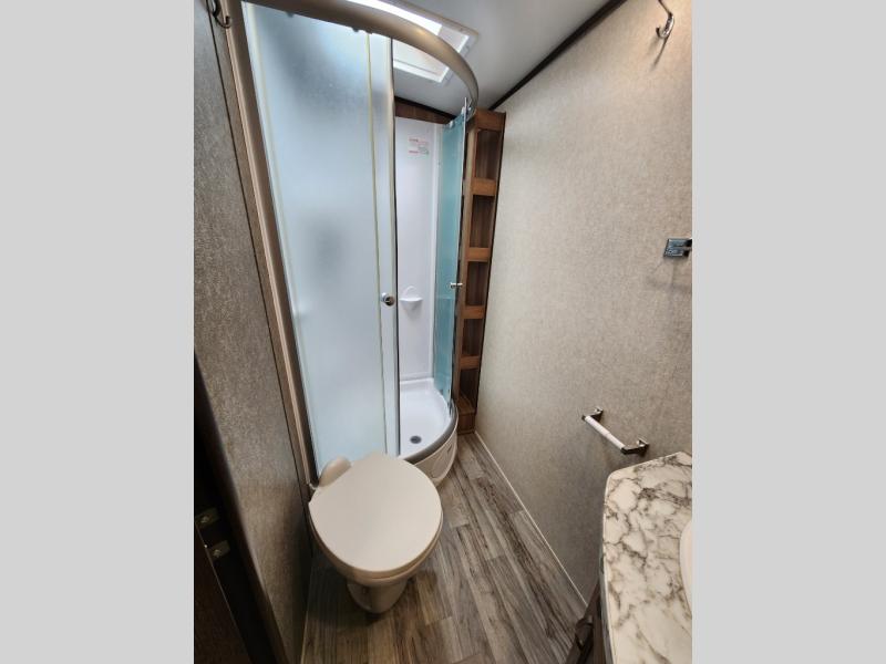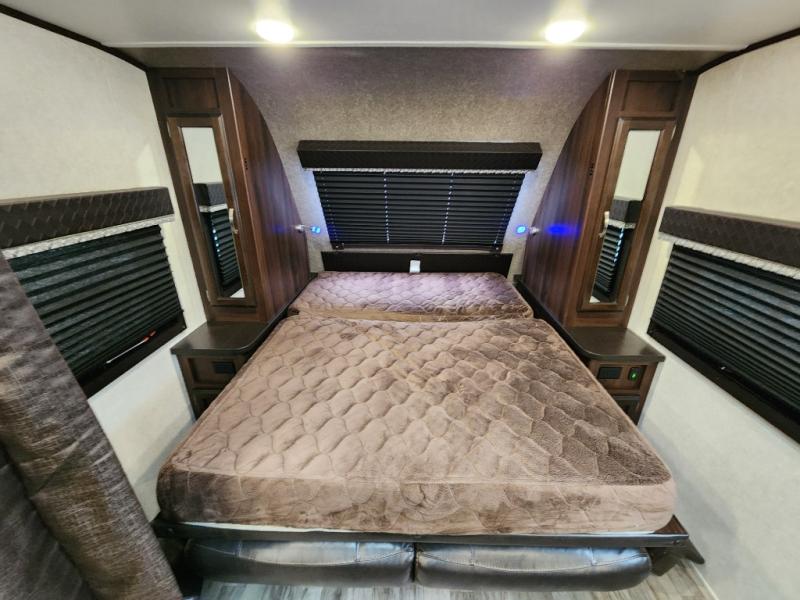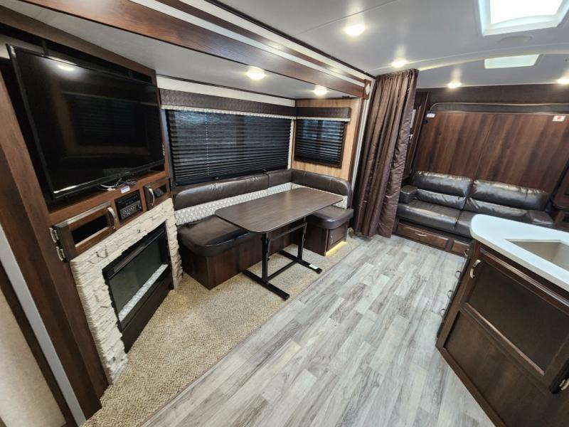 Jayco has made certain that you will stand out from the crowd while traveling in the White Hawk by adding their Magnum Truss Roof System which can withstand up to 4,500 pounds, fifty percent more than the competition. The American-made Goodyear tires with self-adjusting electric brakes are the perfect base to the sleek and aerodynamic exterior. On top of all of that, you will also find an enclosed underbelly with Climate Shield so that nothing will stop you from adventuring during all sorts of weather, and the JAYCOMMAND "Smart RV" system is a wonderful addition that allows you to control various functions of your trailer from the convenience of your smart phone.