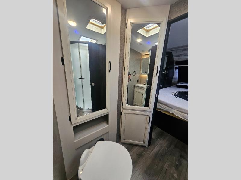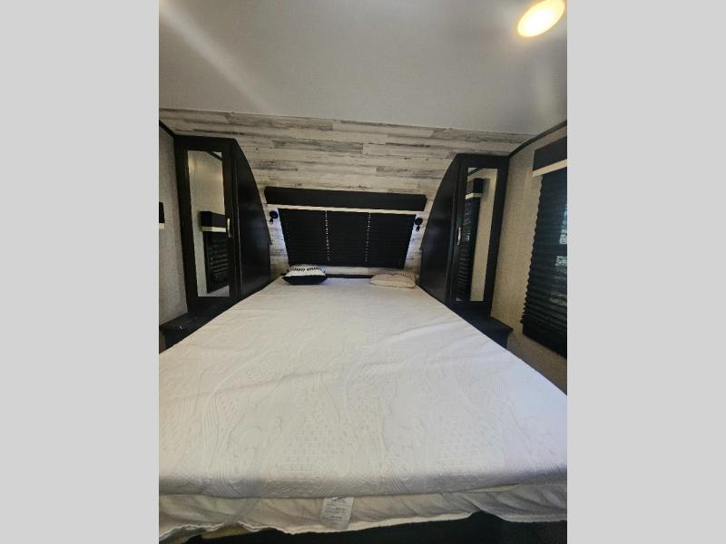 Jayco has made certain that you will stand out from the crowd while traveling in the White Hawk by adding their Magnum Truss Roof System which can withstand up to 4,500 pounds, fifty percent more than the competition. The American-made Goodyear tires with self-adjusting electric brakes are the perfect base to the sleek and aerodynamic exterior. On top of all of that, you will also find an enclosed underbelly with Climate Shield so that nothing will stop you from adventuring during all sorts of weather, and the JAYCOMMAND "Smart RV" system is a wonderful addition that allows you to control various functions of your trailer from the convenience of your smart phone.