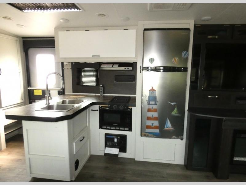 Jayco has made certain that you will stand out from the crowd while traveling in the White Hawk by adding their Magnum Truss Roof System which can withstand up to 4,500 pounds, fifty percent more than the competition. The American-made Goodyear tires with self-adjusting electric brakes are the perfect base to the sleek and aerodynamic exterior. On top of all of that, you will also find an enclosed underbelly with Climate Shield so that nothing will stop you from adventuring during all sorts of weather, and the JAYCOMMAND "Smart RV" system is a wonderful addition that allows you to control various functions of your trailer from the convenience of your smart phone.