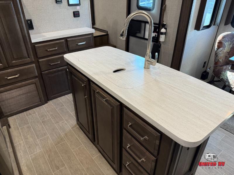 When you choose an Alpine fifth wheel by Keystone RV, you are choosing luxury. The Whisper Air System is the quietest cooling system ever developed, and it keeps your RV at the perfect interior temperature no matter what the outside weather may bring. Every aspect of the Alpine has been designed to enhance your full-time camping experience, like the Super Cinema package, and the all-in-one water works exterior utility center will help you keep your Alpine flowing at its best throughout each adventure. You will also love the Furrion RV Chef Collection that gives you the ability to cook with precision and consistency as you travel the country and helps you provide your guests with a higher level of cuisine during each camping trip.