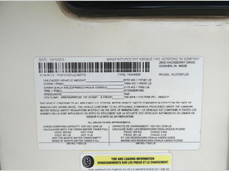 Used 2020 Keystone RV Alpine 3700FL Fifth Wheel