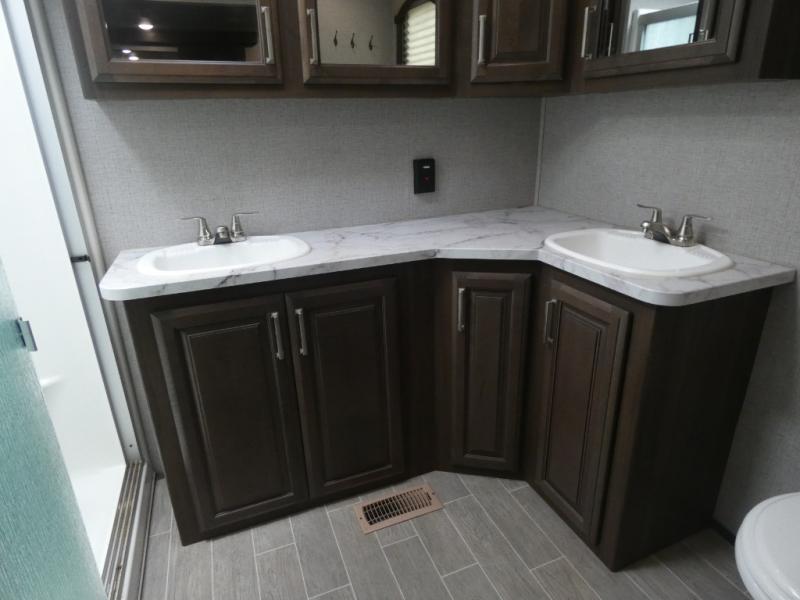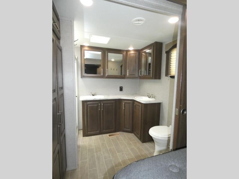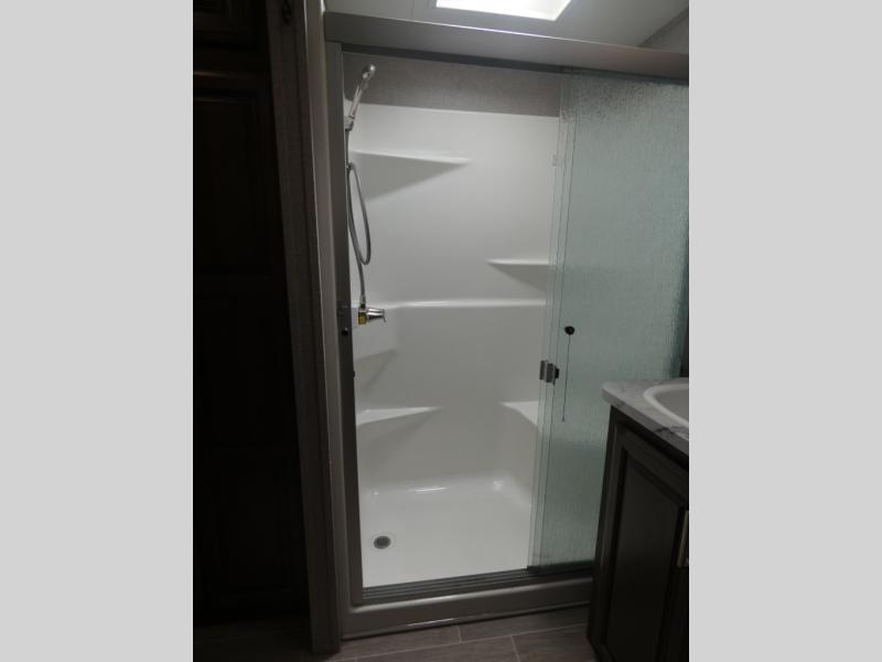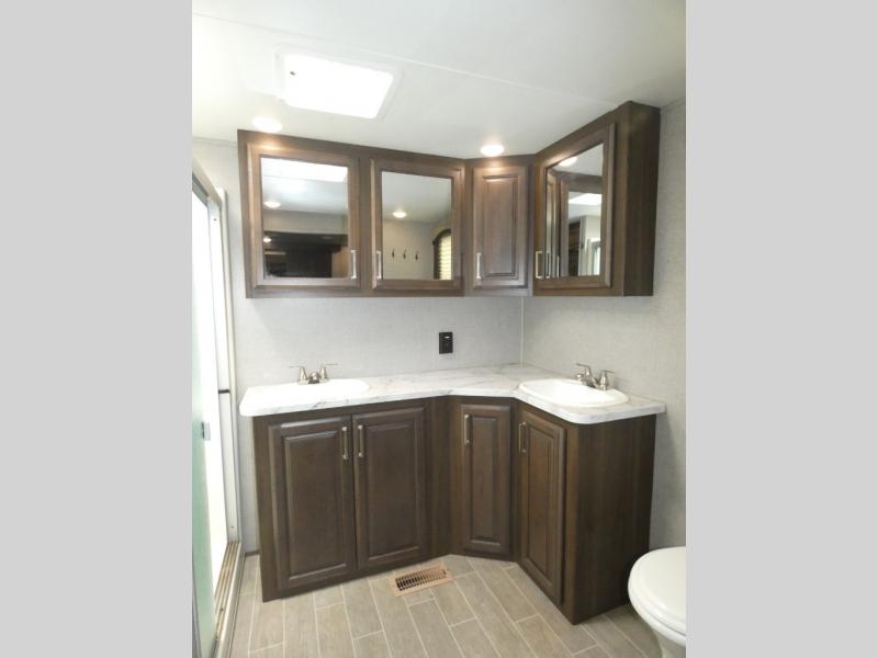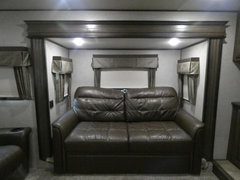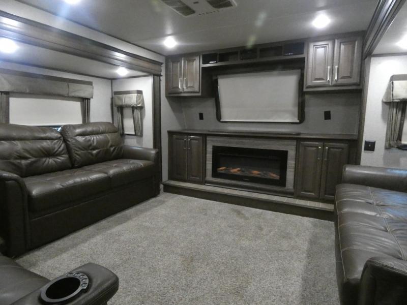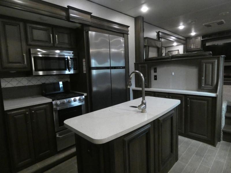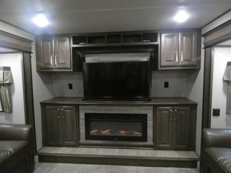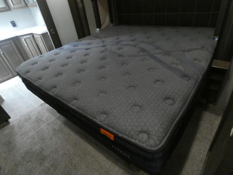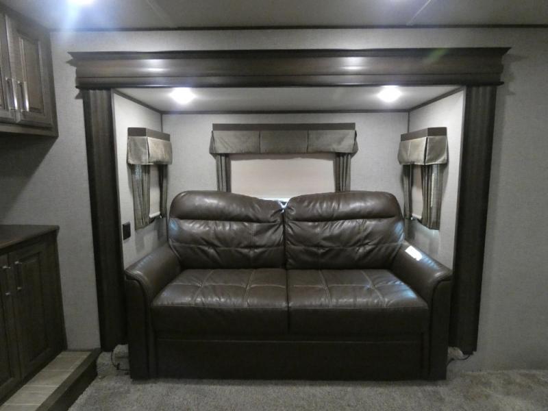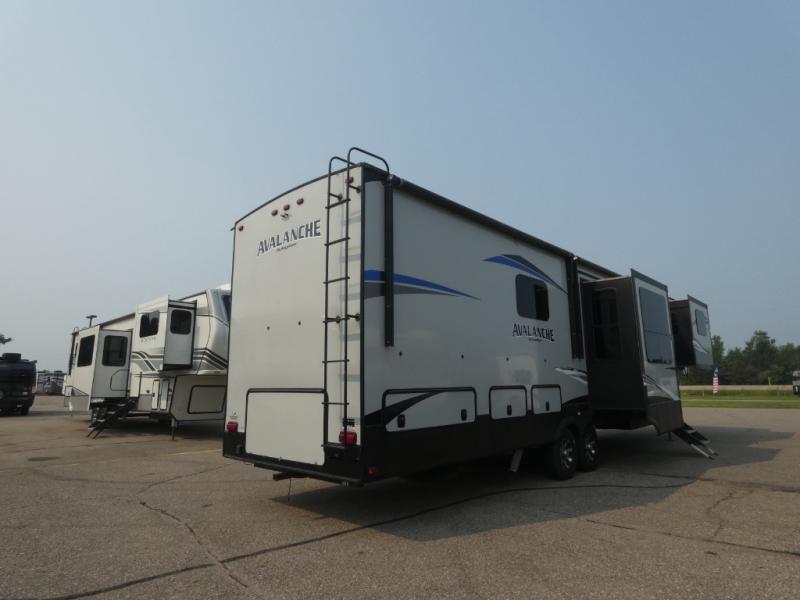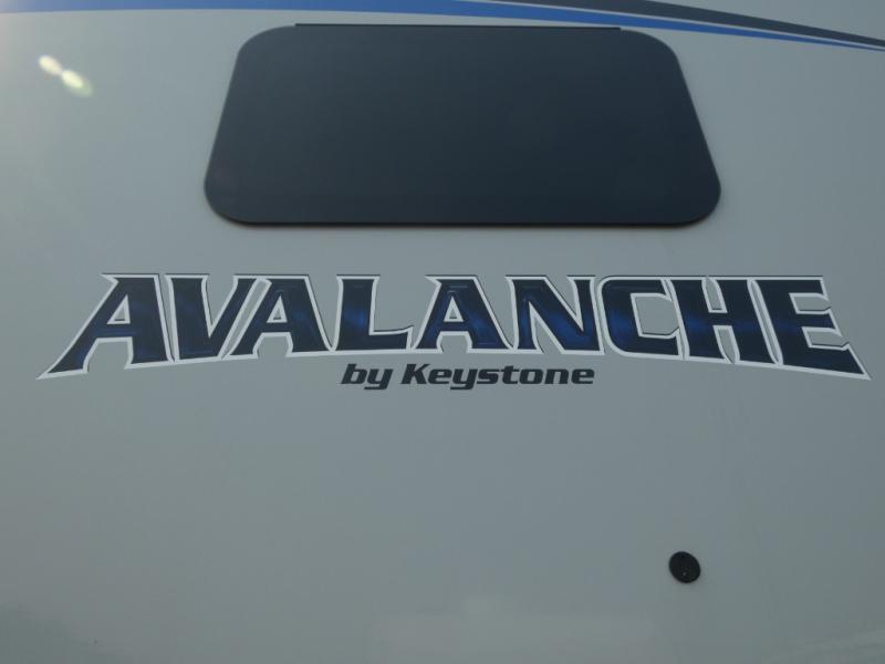 With any Keystone Avalanche fifth wheel, you will enjoy getting to your favorite destination with the exceptional turning radius from the MAX TURN high-gloss fiberglass front cap, as well as the Road Armor suspension. Once you have arrived at your destination, the One Place Command Center with its centrally located operational switches and gauges will allow you to set up your RV quickly, and the one-touch electric awning with adjustable arms will provide protection from the sun and weather while you load your clothing, dishes, and gear into all of the interior storage compartments.