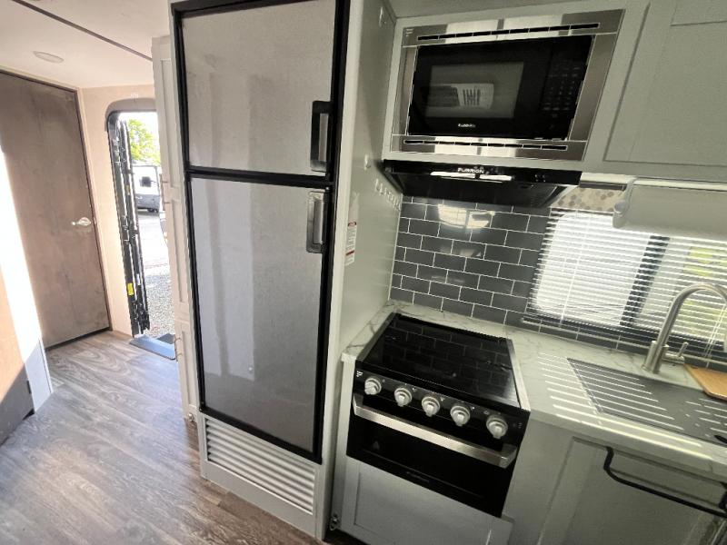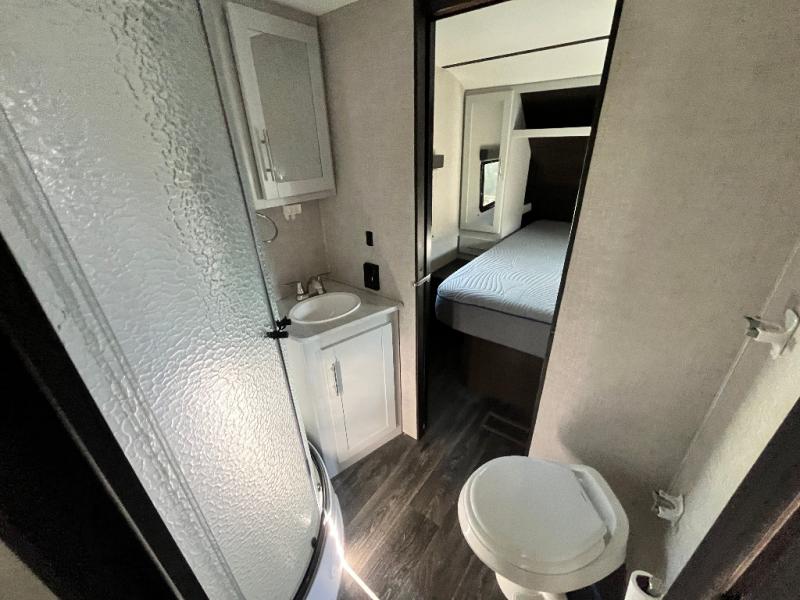 With any Bullet travel trailer by Keystone, you will appreciate the wide-stance Dexter E-Z Lube axles, the enclosed and heated underbelly, and the aggressive front profile for increased towability. Each model includes a 6 Cu. Ft. stainless steel double door refrigerator, ultra-durable Whitewater continuous-edge countertops, plus a stainless steel sink for easy clean-up. You'll enjoy hardwood entry doors into the bedroom, dual USB ports for tablet and phone, plus a laundry chute to make camping hassle-free. The Bullet features a variety of floorplans to fit your family's needs best. Choose your favorite layout today!