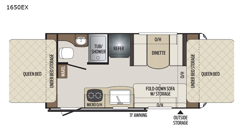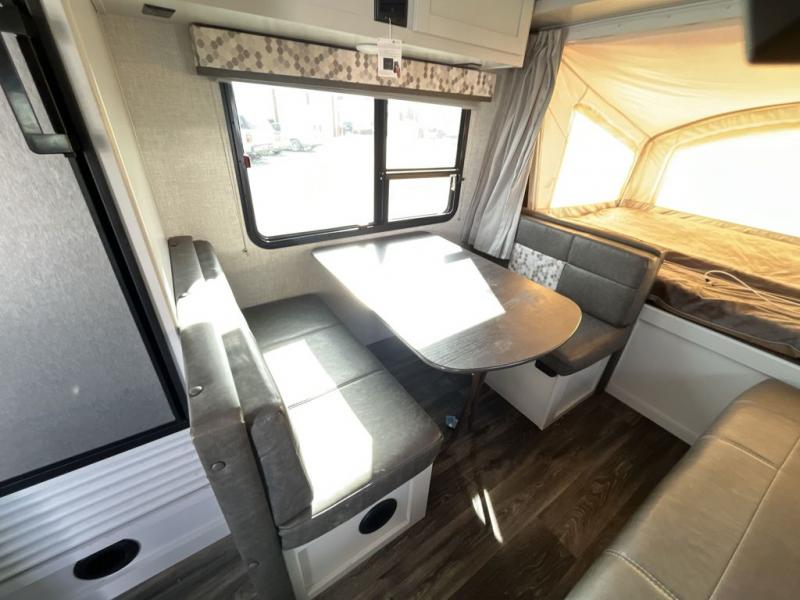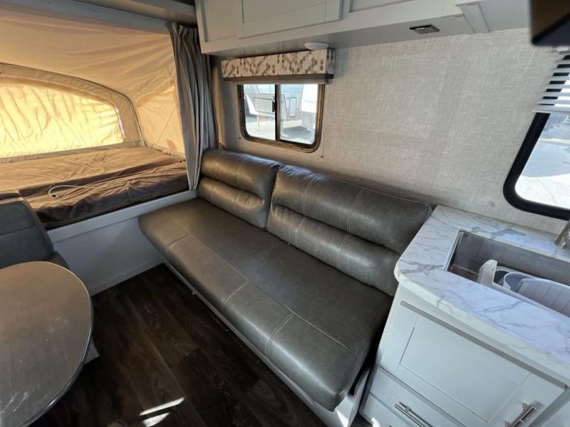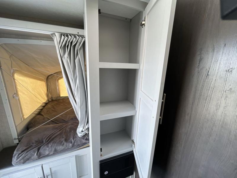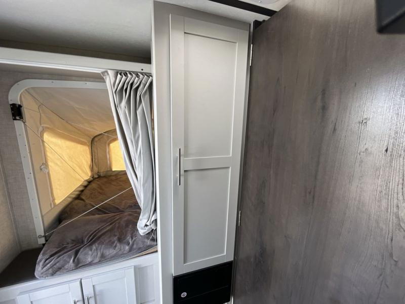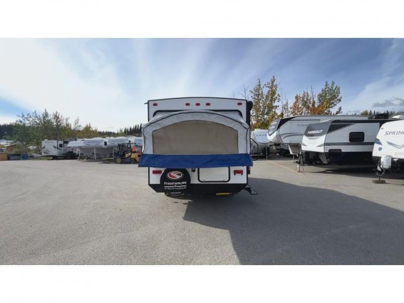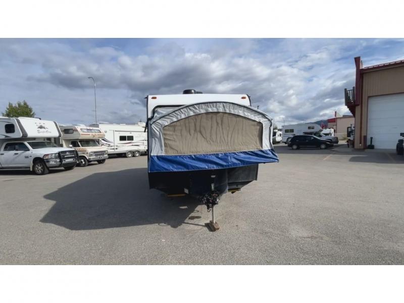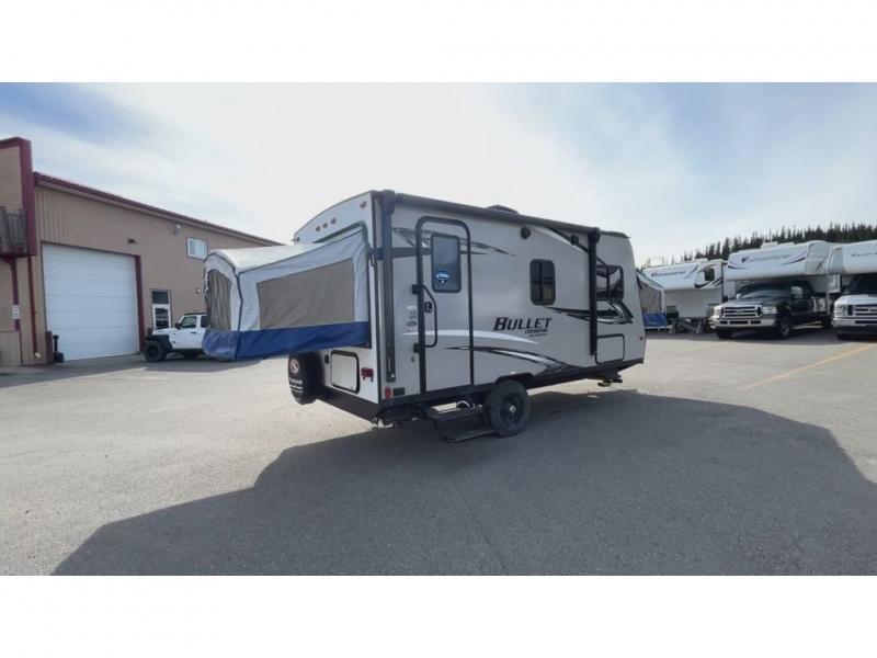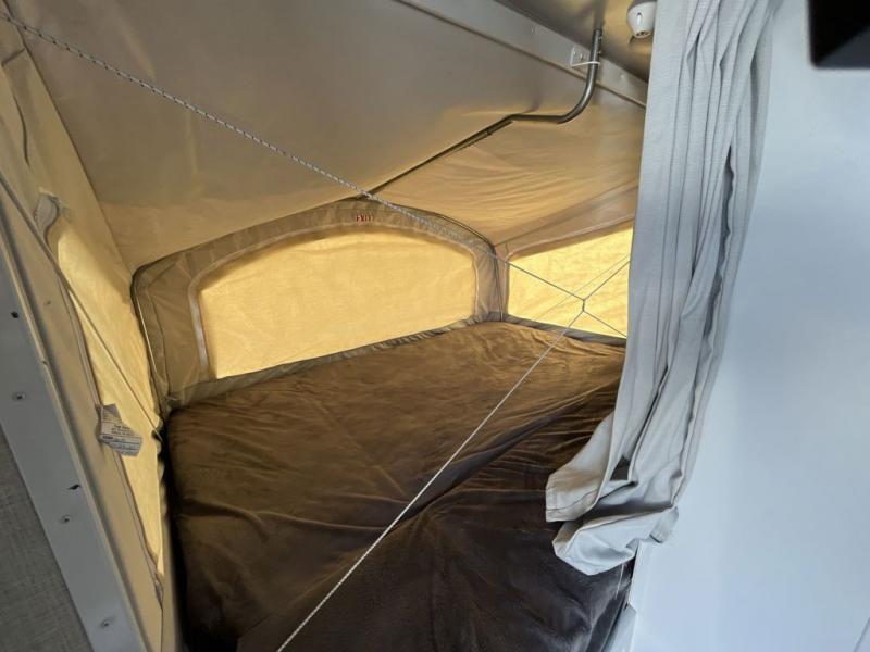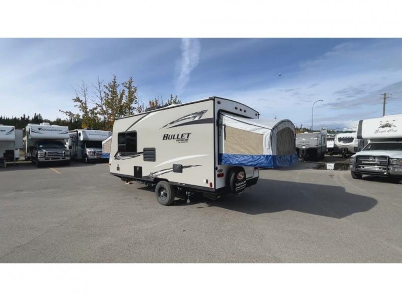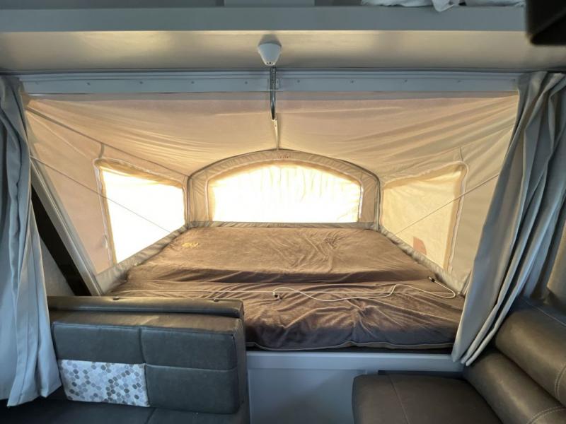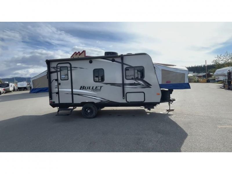If you love the amenities that an RV provides, but you also enjoy sleeping underneath the stars, then you need this Bullet Crossfire expandable. Instead of spending your evenings on the wet and hard ground, you can sleep peacefully and comfortably each night while still admiring the dark sky on one of the two queen tent beds. In the morning, you can cook up a hearty breakfast on the three-burner cooktop, or you can pull out last night's left overs from the 6 cubic foot double-door refrigerator. After you've made your bed and returned the fold-down sofa to its original position for the day, you and your family will be ready to head outside for another day of adventuring.