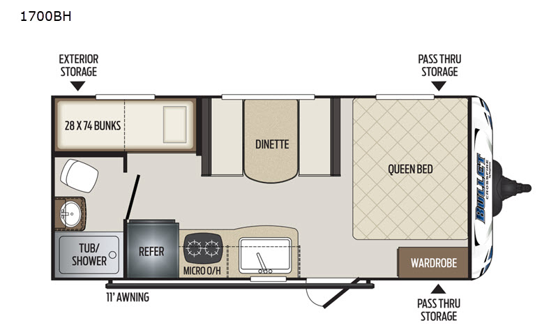 Keystone Bullet Crossfire travel trailer 1700BH highlights: