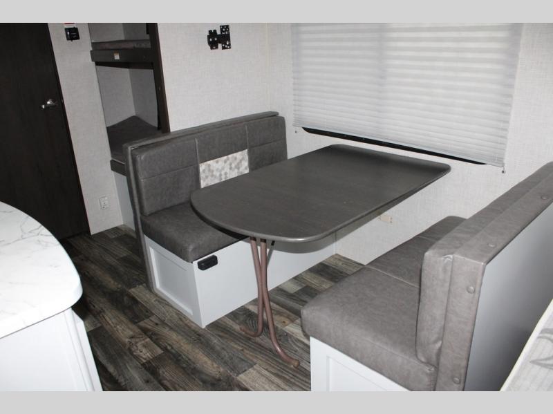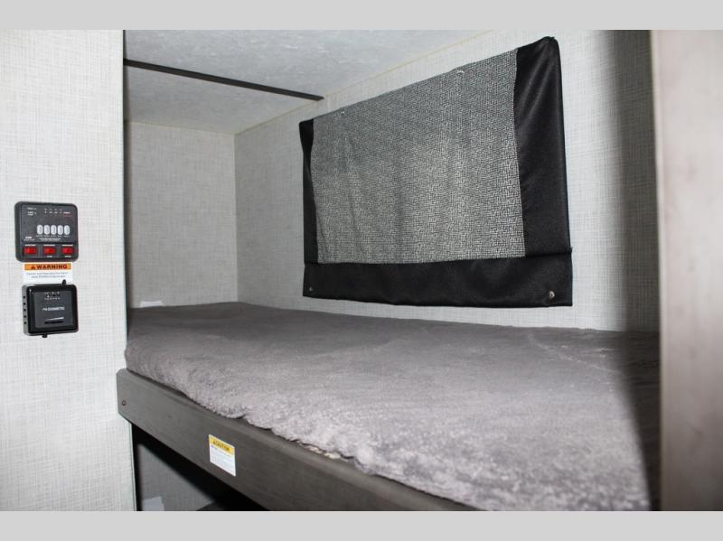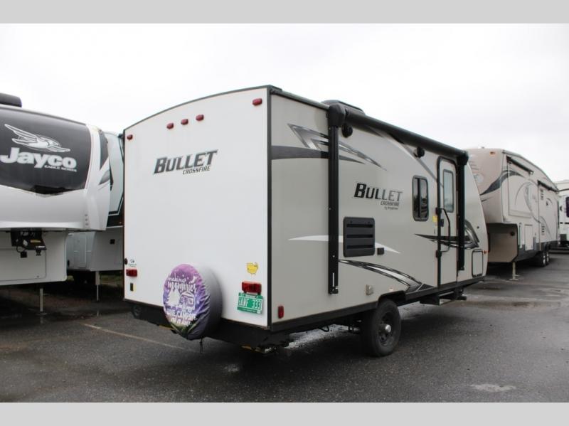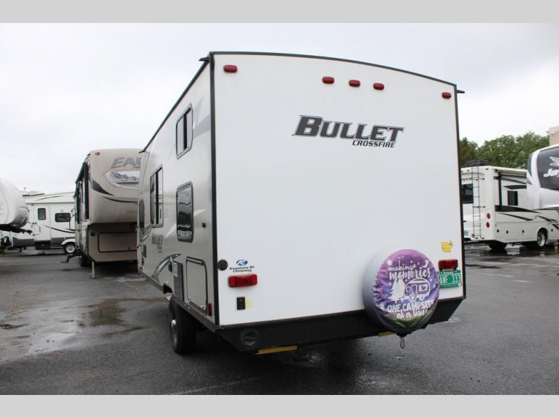 Take a break from your stressful, busy life and enjoy a weekend getaway with the family in this Bullet Crossfire travel trailer. With its set of bunk beds, booth dinette, and queen-size bed, this trailer gives you plenty of room to sleep five people comfortably along the way, and with the full bathroom and kitchen amenities, there isn't a need that won't be met when traveling with this trailer. You will also appreciate having an 11' electric awning to protect you from the outdoor elements as you gather around the campfire each night and roast marshmallows.